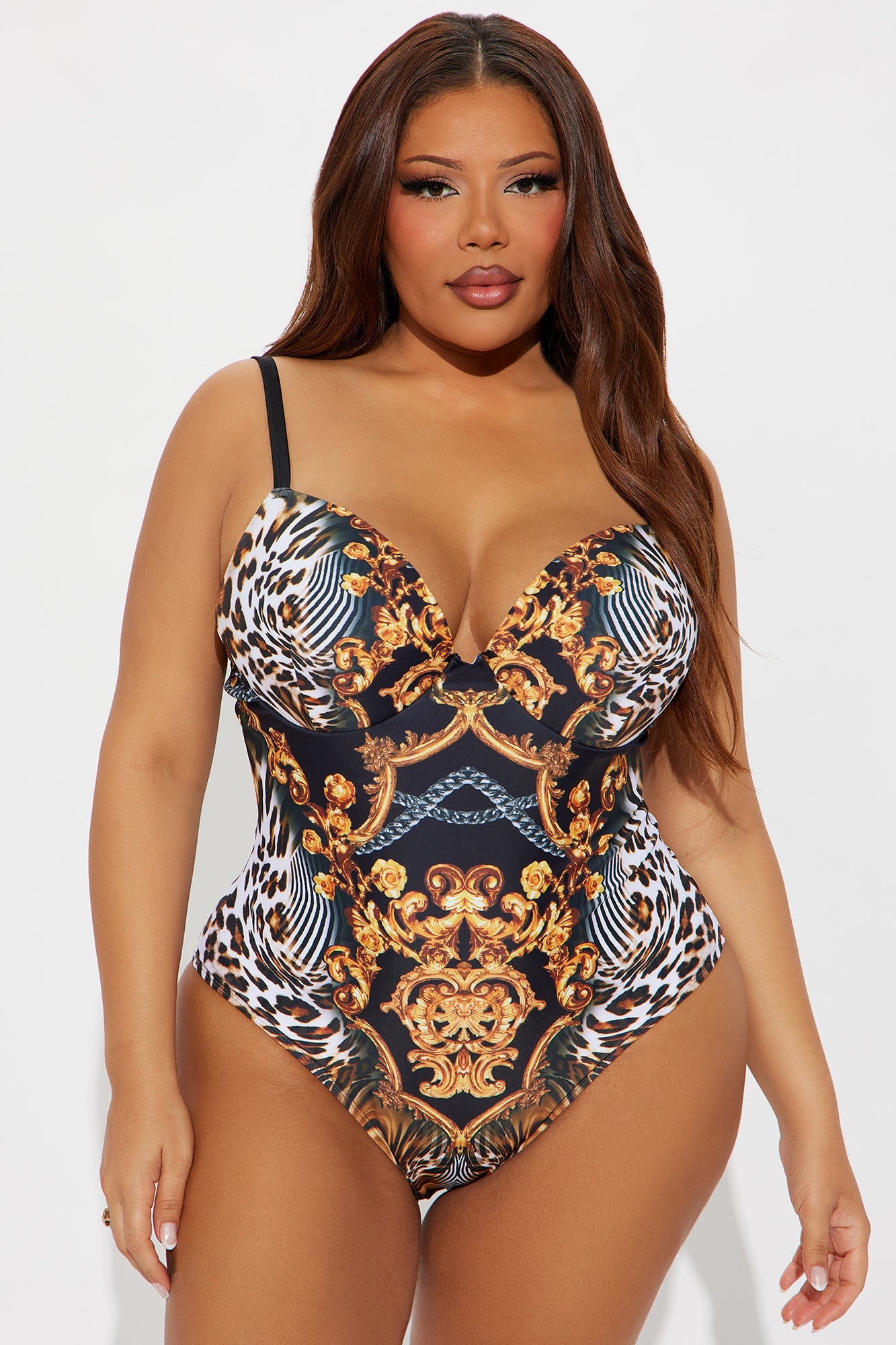 Moira Underwire 1 Piece Swimsuit Set - Black/Brown