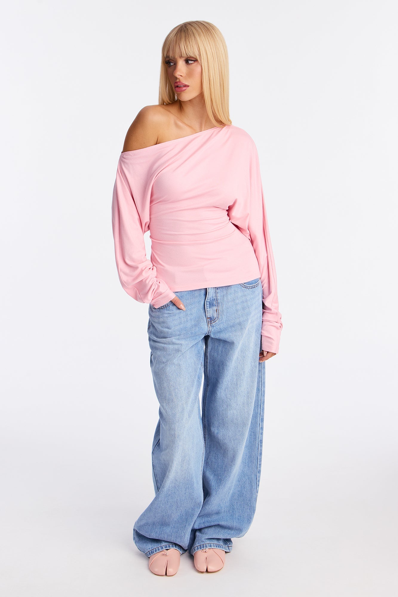Nadia Off Shoulder Long Sleeve Top - Pink