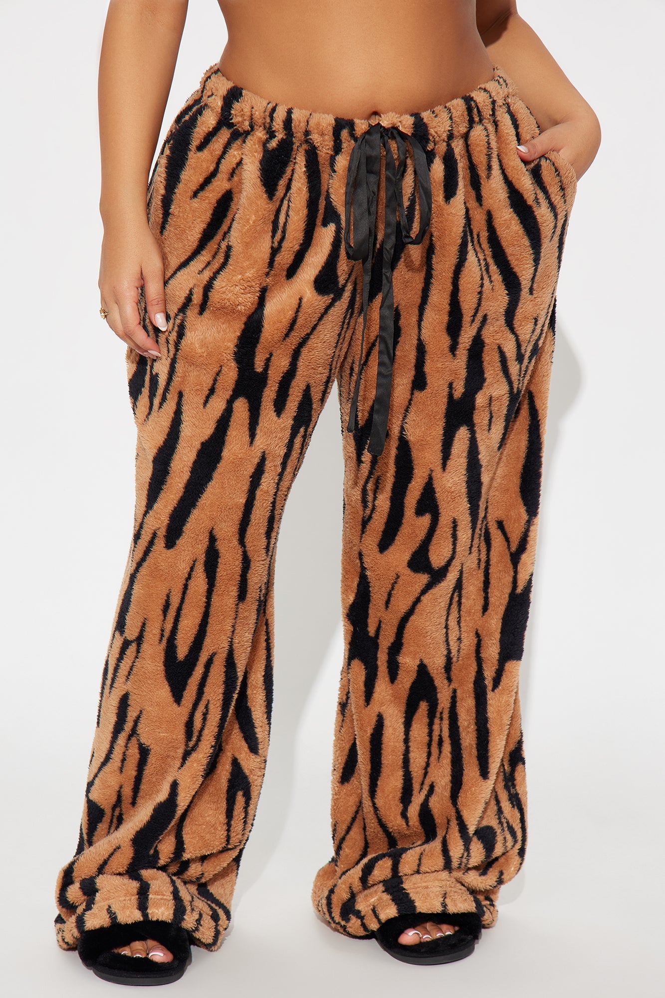 Nia Tiger Faux Fur Wide Leg Pant 32″ - Brown/combo