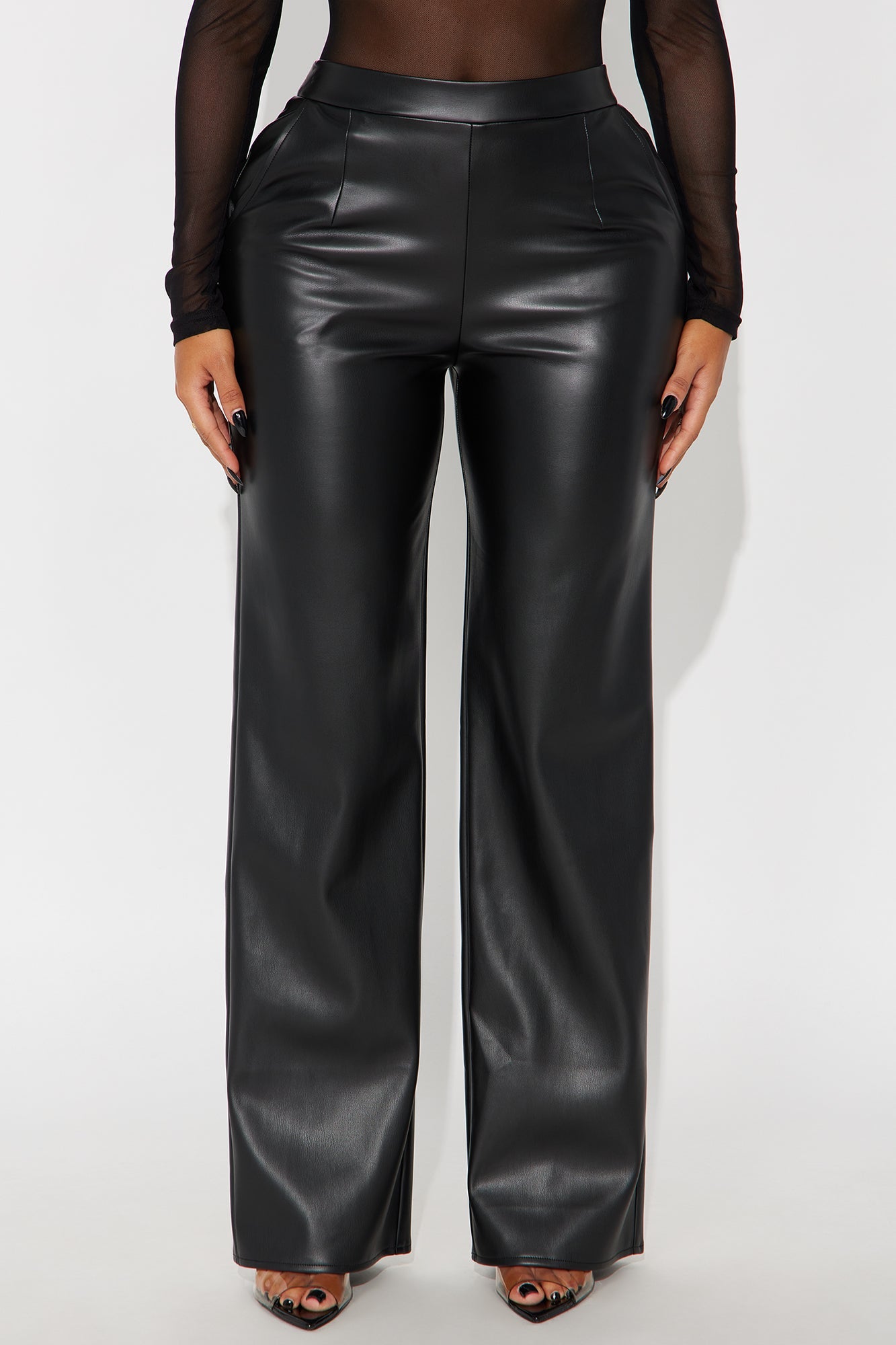 No Small Talk Faux Leather Straight Leg Pant 32″ - Black
