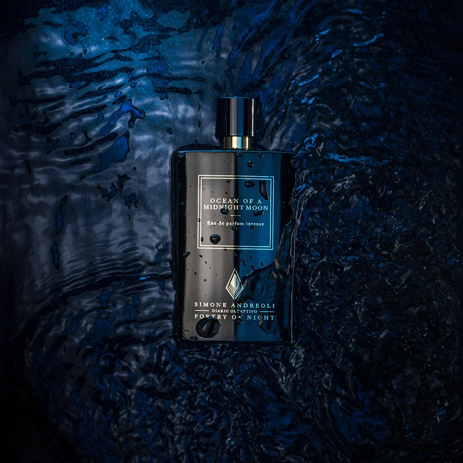 Ocean of a Midnight Moon is a marine-woody fragrance that captures the shimmering calm of the sea under moonlight. It opens with seawater freshness paired with bright citrus peel and crisp mint. The heart introduces green-aromatic notes of myrtle, juniper berries and fir, evoking a night breeze over open water. The base settles into driftwood, oakmoss, leather and subtle sunned wood-tones, creating a smooth, contemplative trail of oceanic depth and twilight mystery.