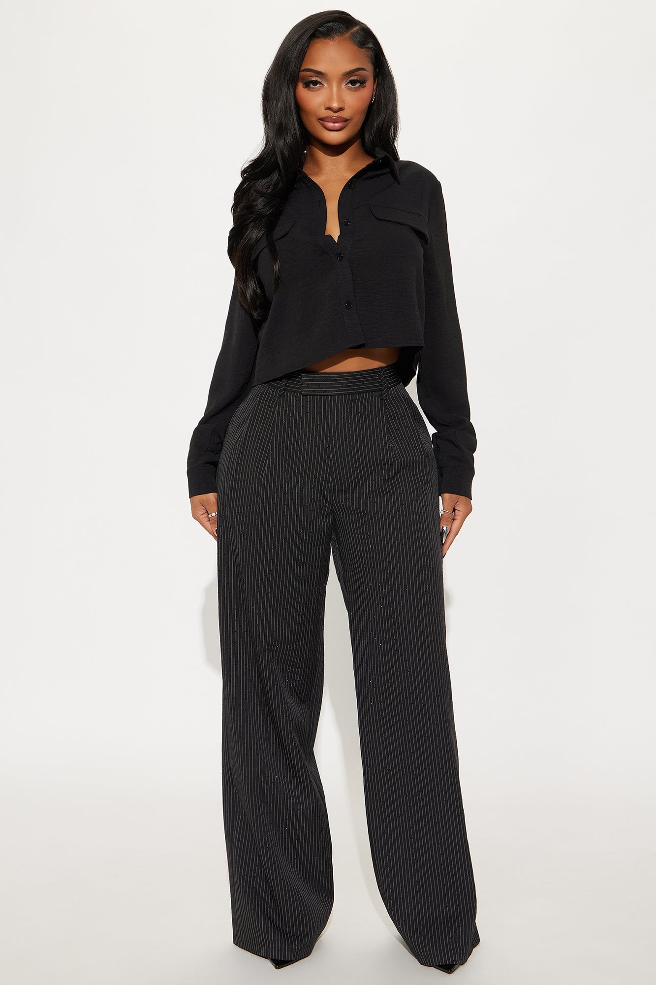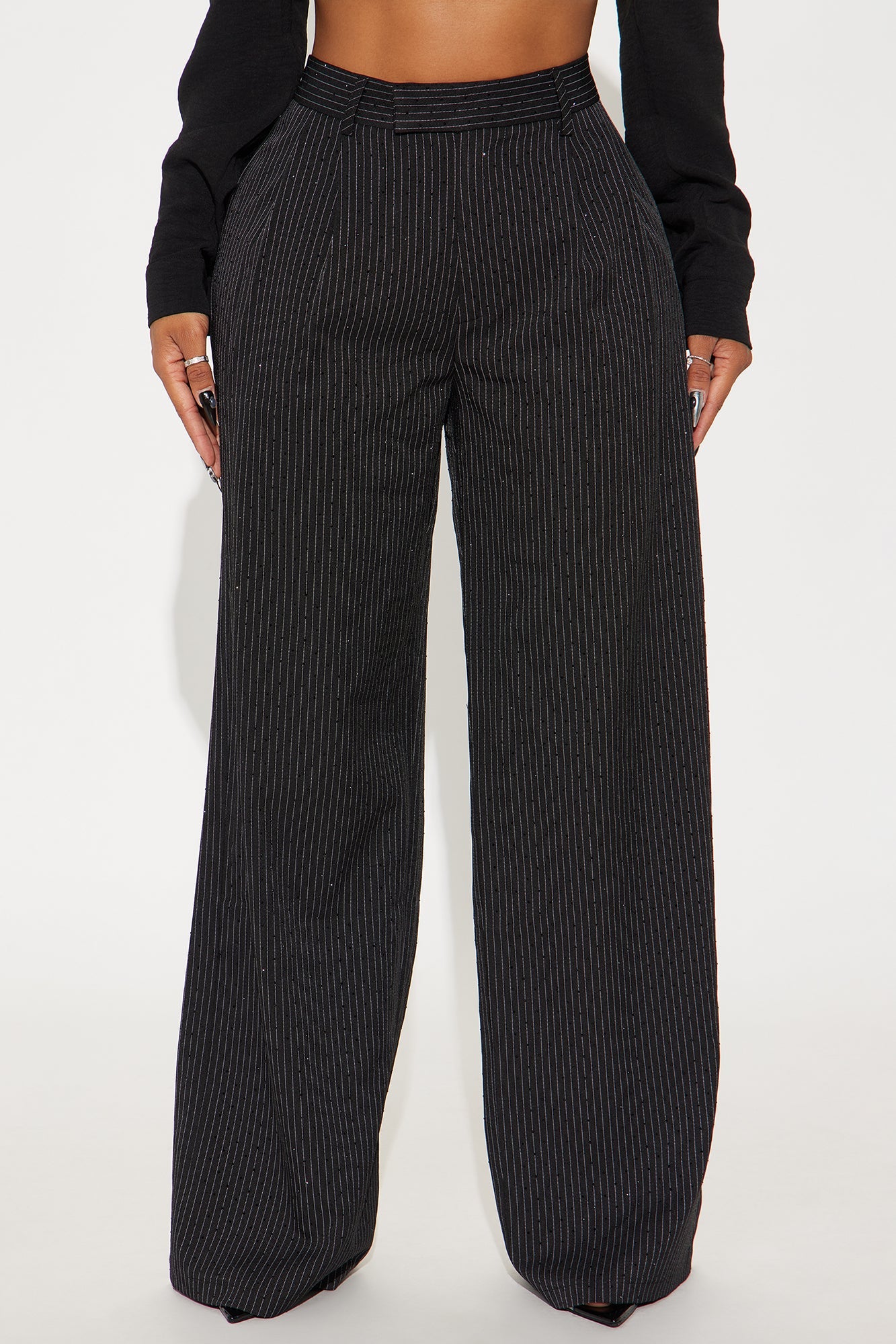 Office Glow Rhinestone Pinstripe Trouser Pant 32″ - Black