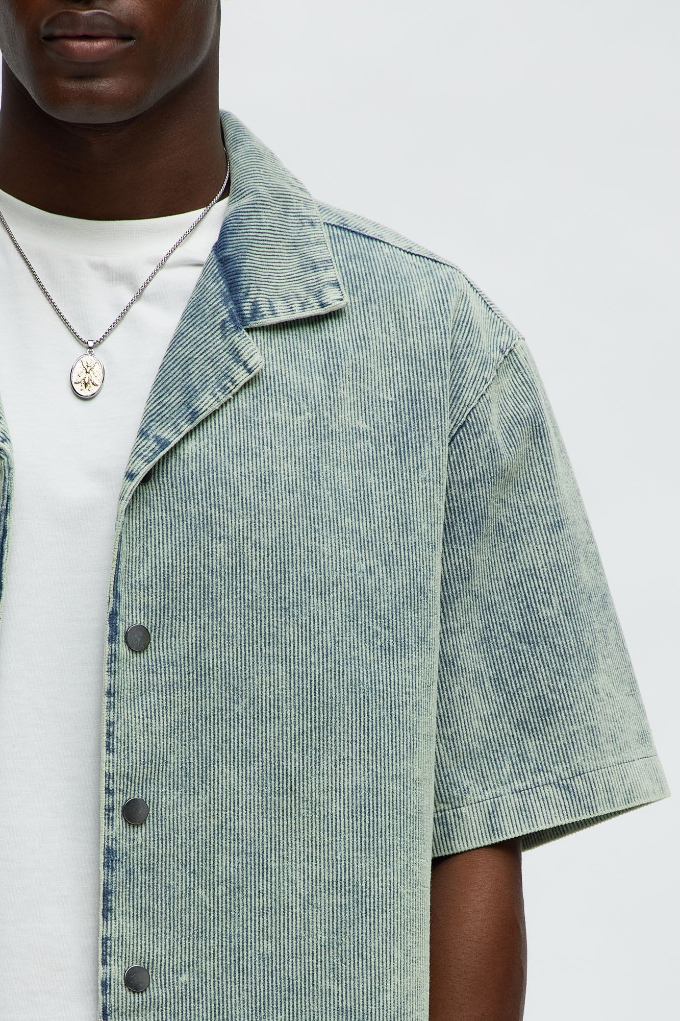 Ohio Corduroy Cuban Collar Cropped Short Sleeve Shirt - Blue/combo