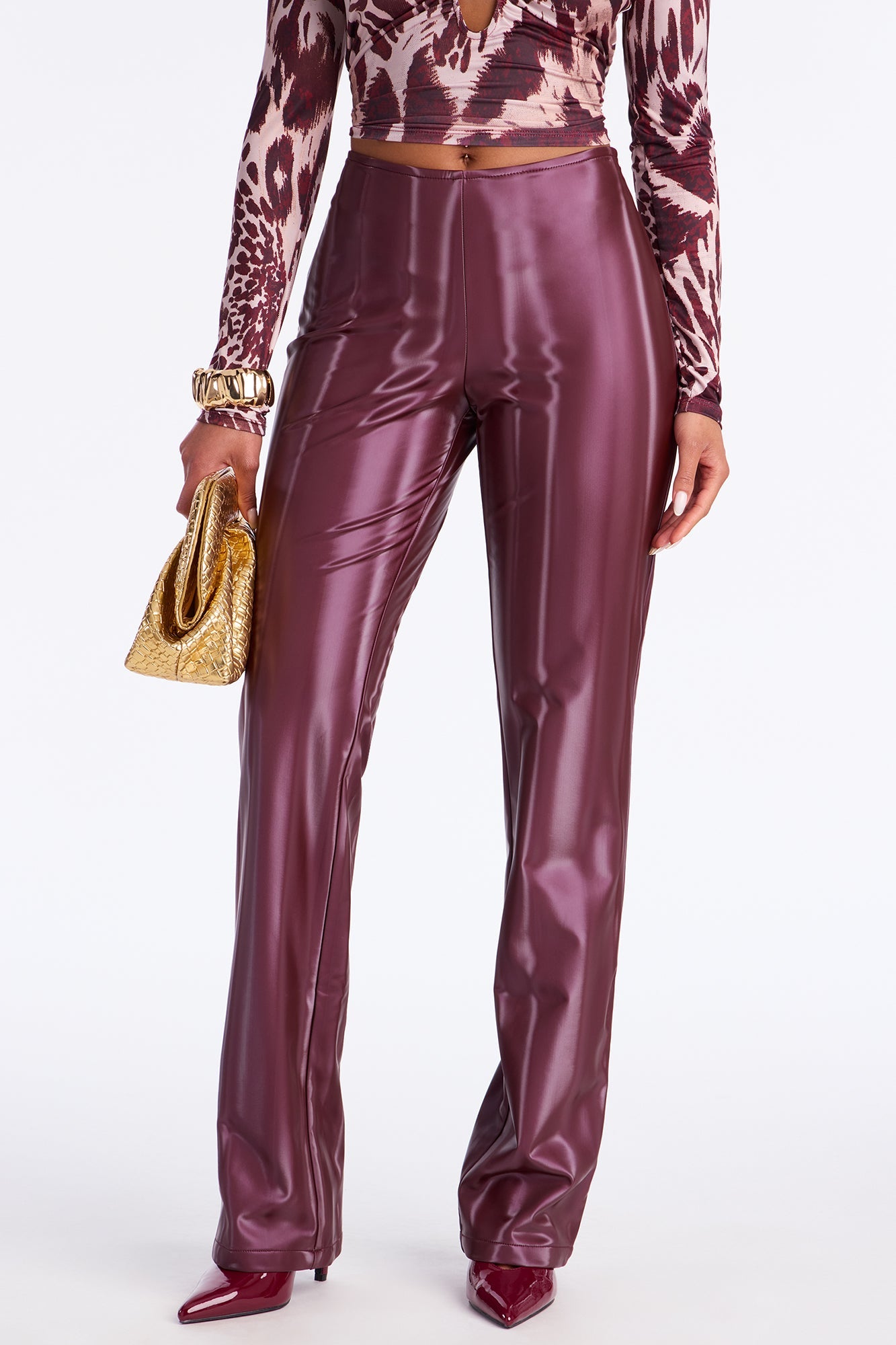 Olandria Faux Leather Straight Leg Pant 33 - Burgundy