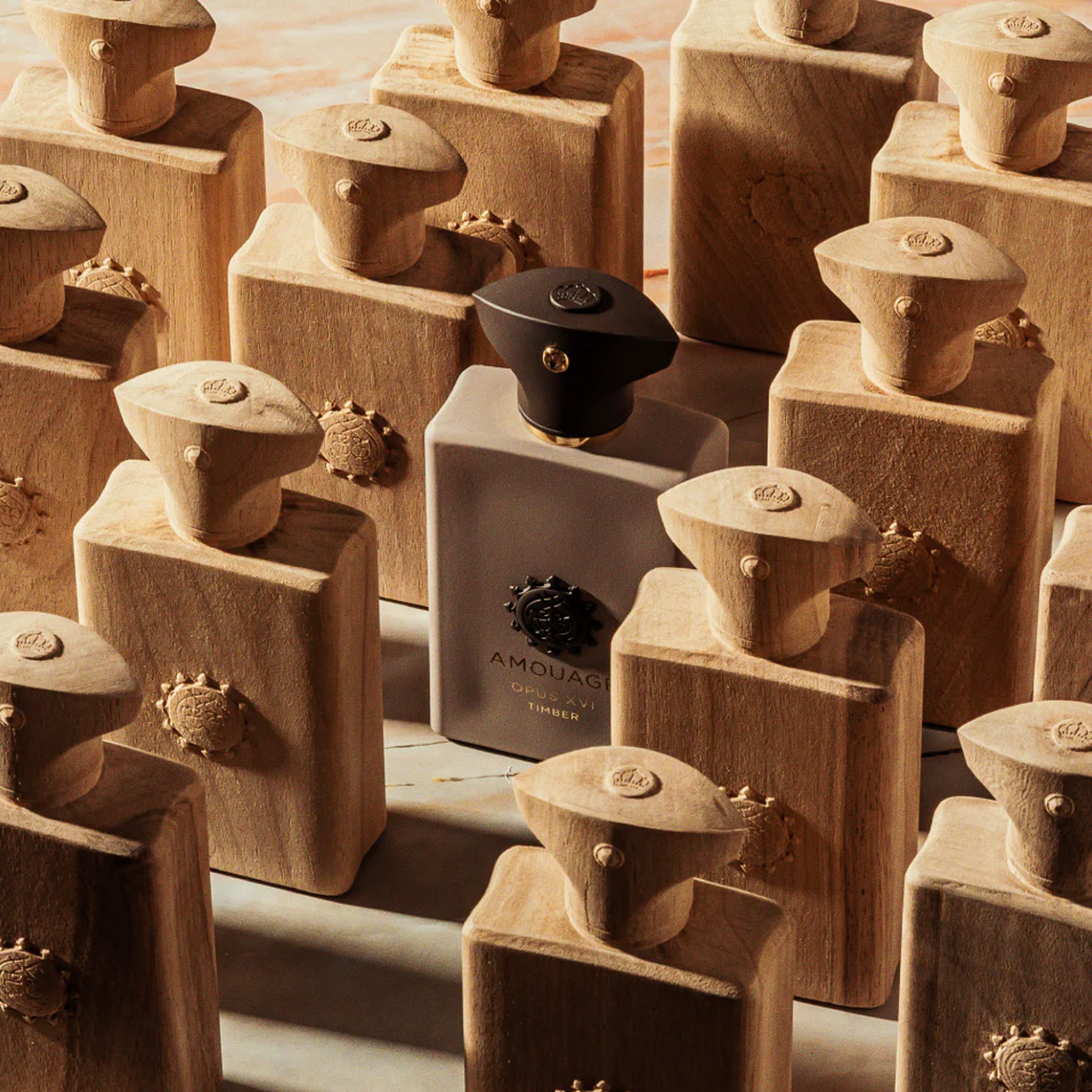 Opus XVI – Timber opens with cypress, cardamom, juniper, and pink pepper for a bright, woody introduction. The heart combines lavandin, fir balsam, and Hojari frankincense, adding aromatic depth. The base features palo santo, vanilla bourbon, sandalwood, cedarwood, and patchouli, creating a warm, enduring, and elegant finish.