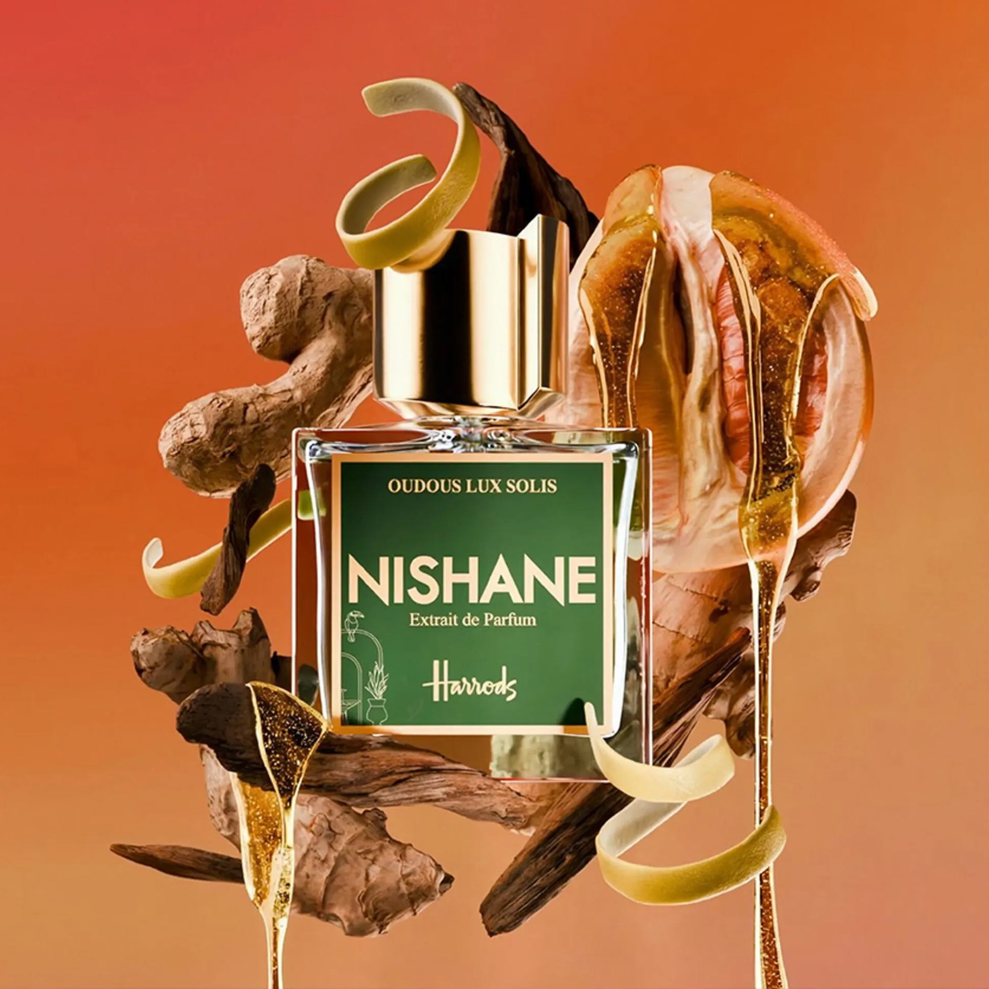 Oudous Lux Solis opens with a radiant burst of tropical fruits, featuring Italian mandarin, pomelo, and warm ginger. The heart reveals golden notes of honey and cistus, adding brightness and warmth. The base settles into a rich layer of oud, patchouli, and akigalawood, creating a woody-resinous foundation that balances the composition's luminous opening.