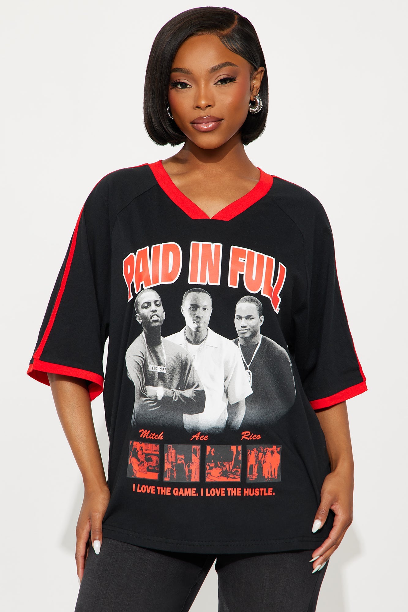 Paid In Full Oversized VNeck Tee - Black
