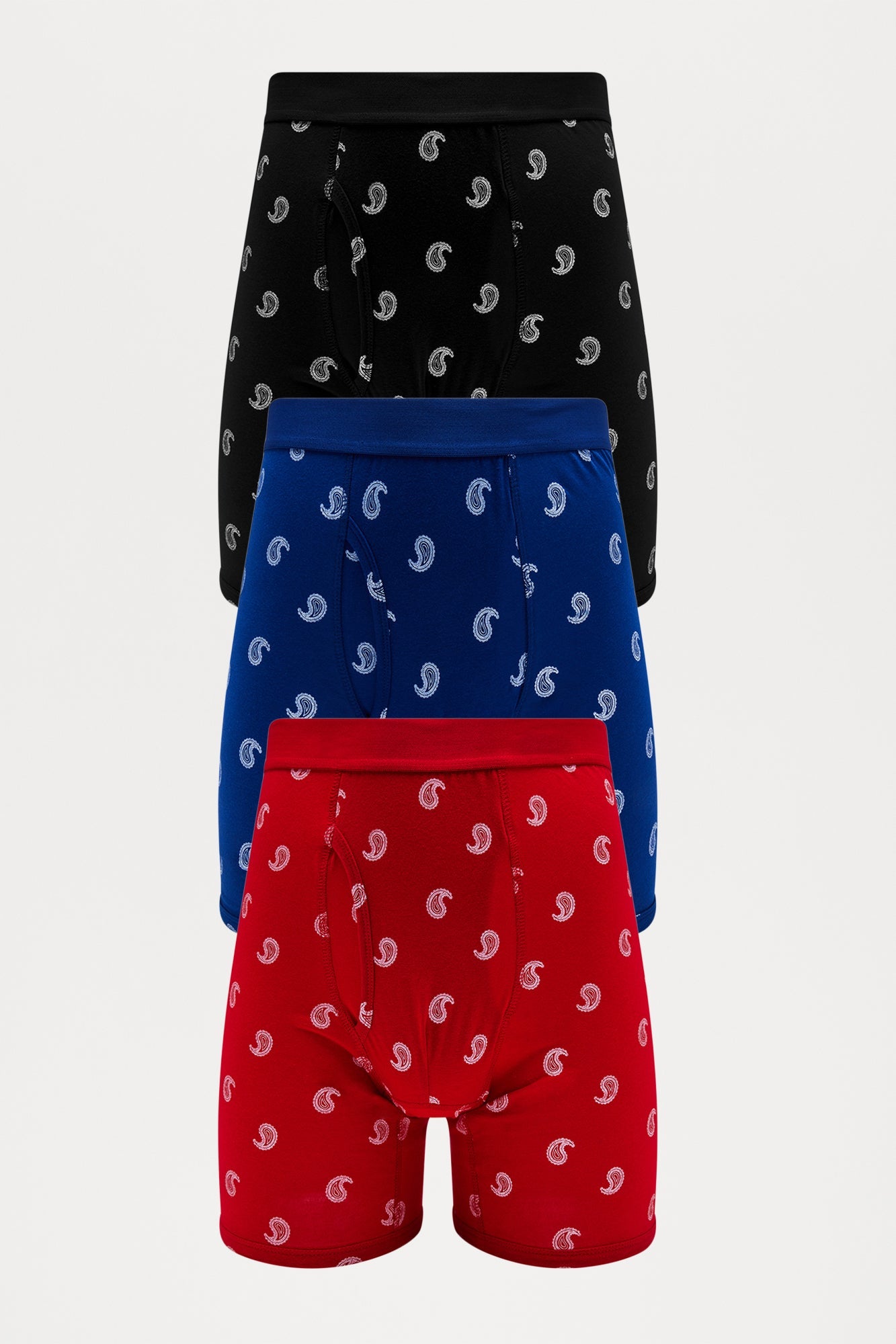 Paisley Patterned Boxer Brief 3 Pack - Red/combo