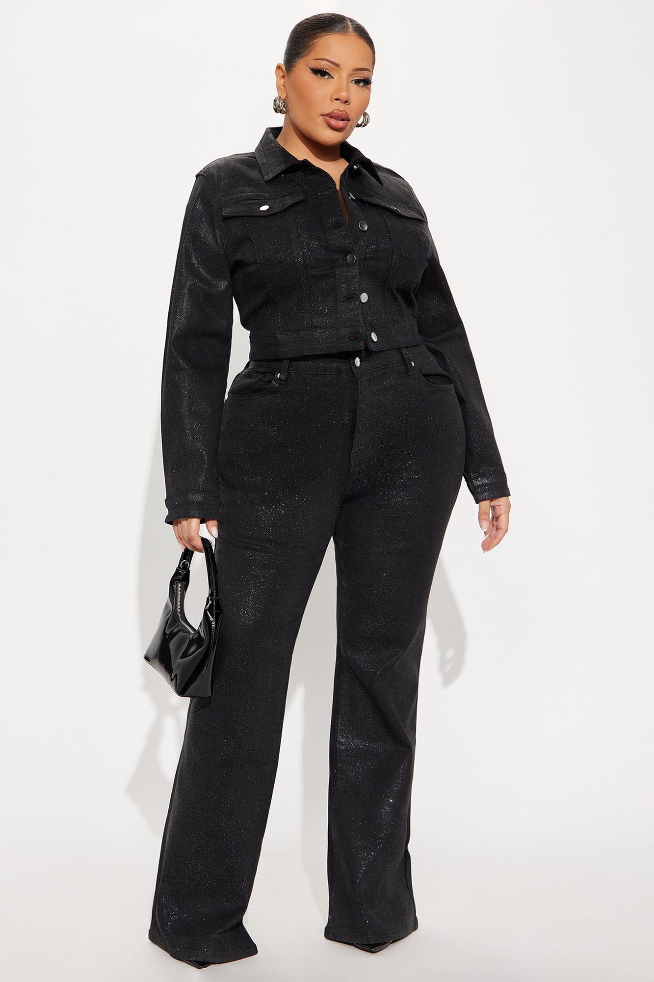 - Pair With Past Midnight Glitter Foil Flare Jeans To Complete The Look!