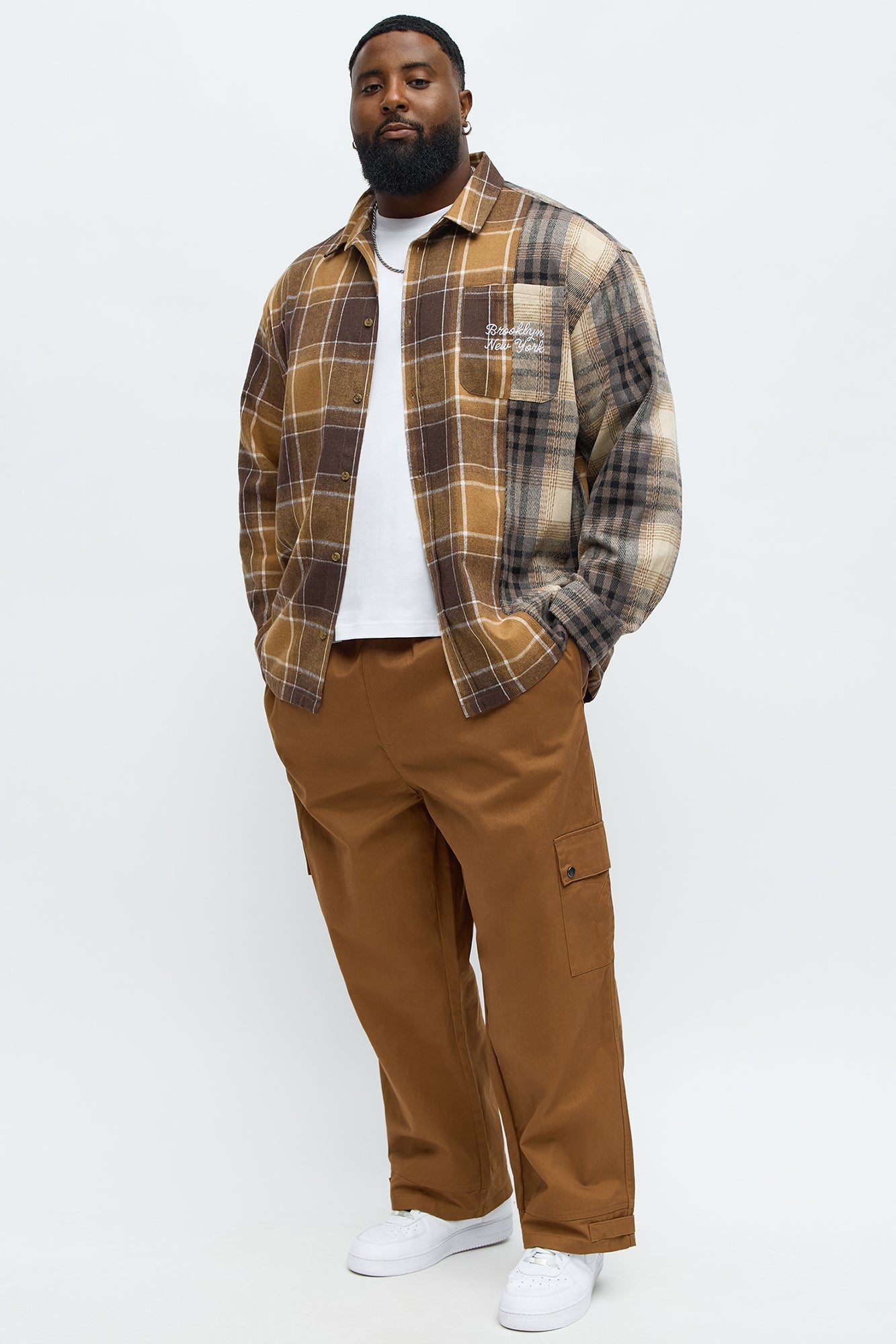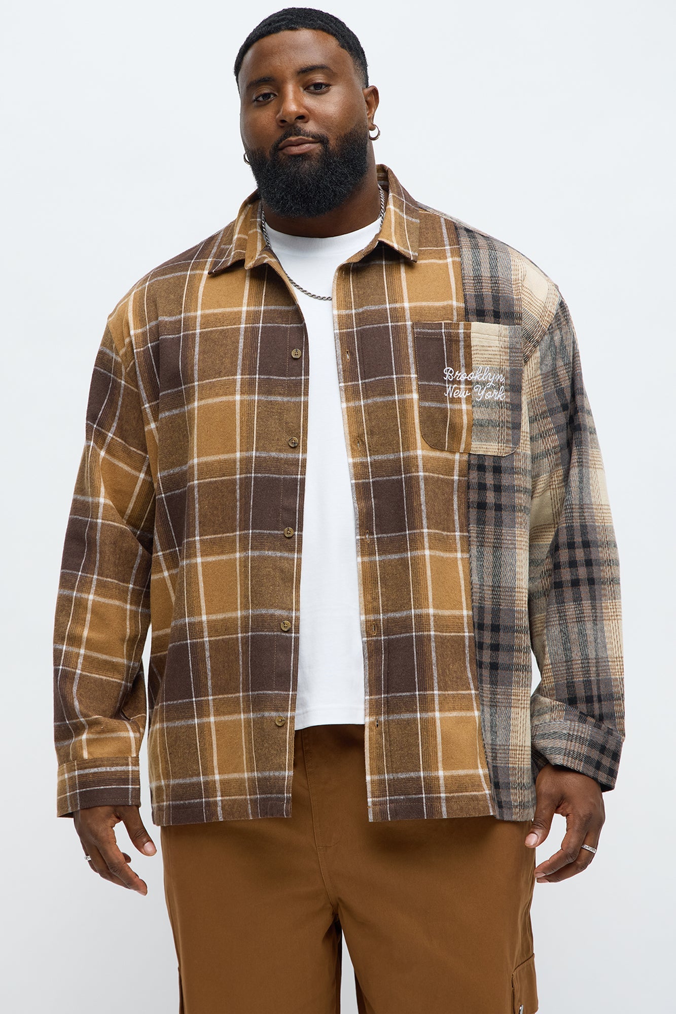 Patchwork Flannel Button Up Shirt - Brown Combo