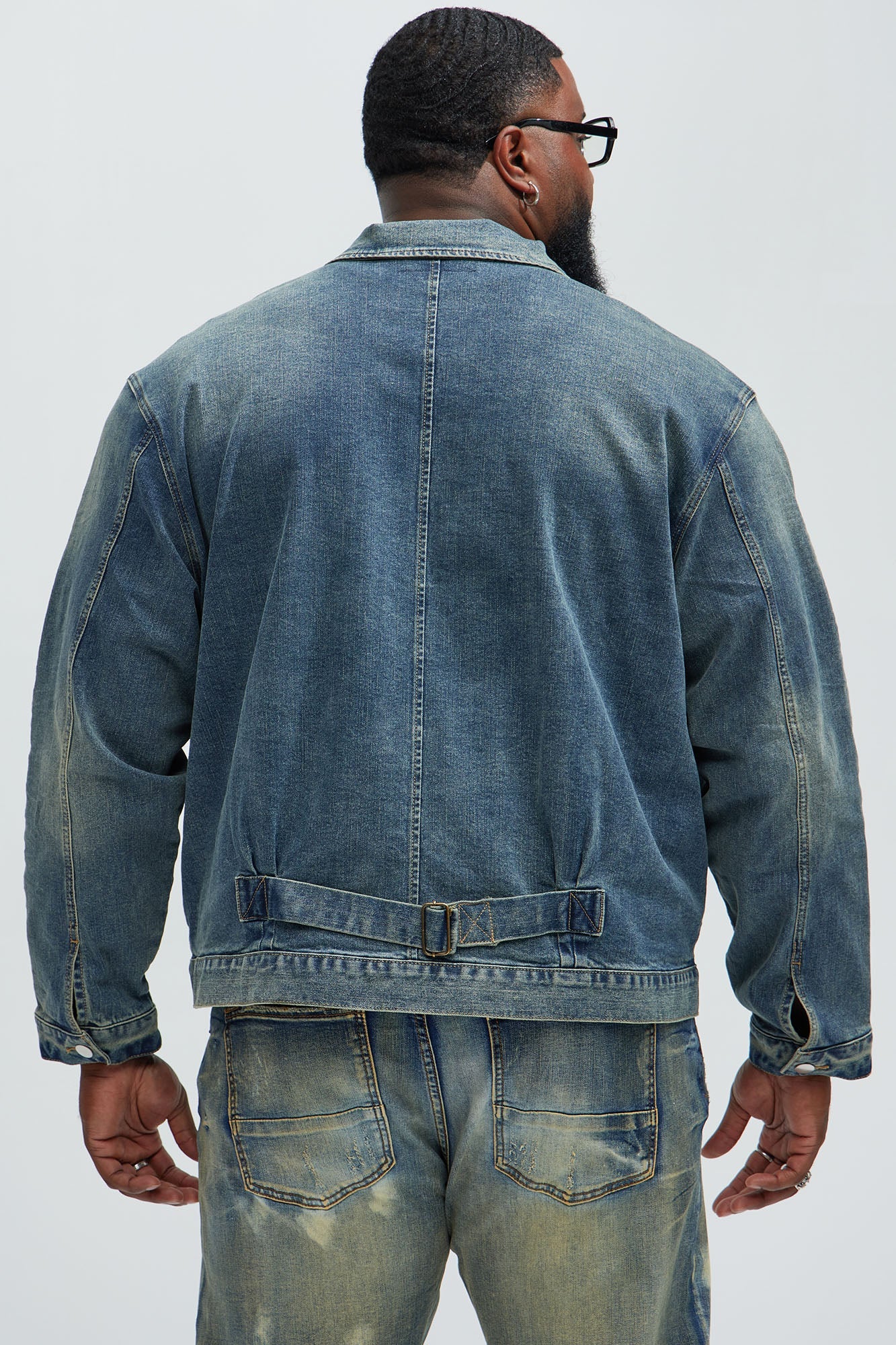 Patrick Pleated Trucker Jacket - Vintage Blue Wash