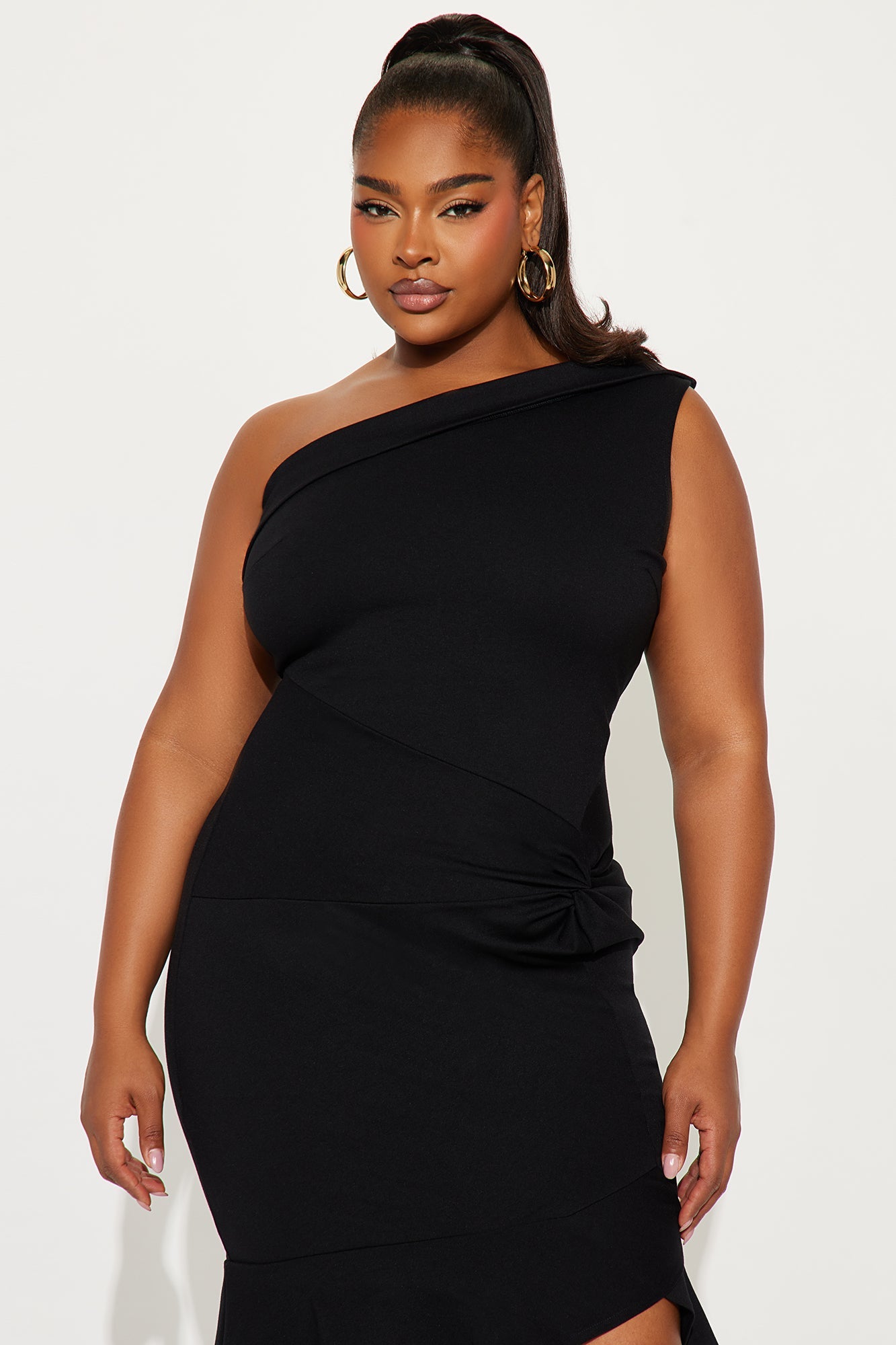 Penelope Body Sculpt Ponte One Shoulder Midi Dress - Black