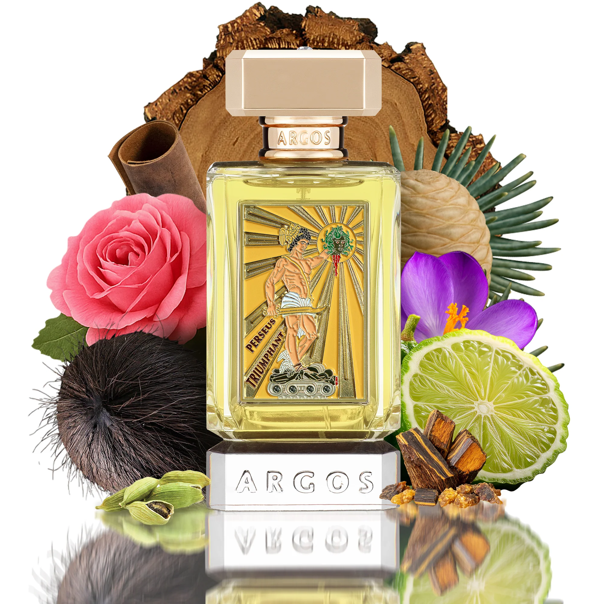 Perseus Triumphant captures the spirit of victory, opening with luminous bergamot, saffron, and cardamom. A bold heart of rose and leather adds depth, leading to a powerful base of atlas cedar, musk, and oud. The result is a refined and commanding scent, inspired by the legendary hero Perseus.
