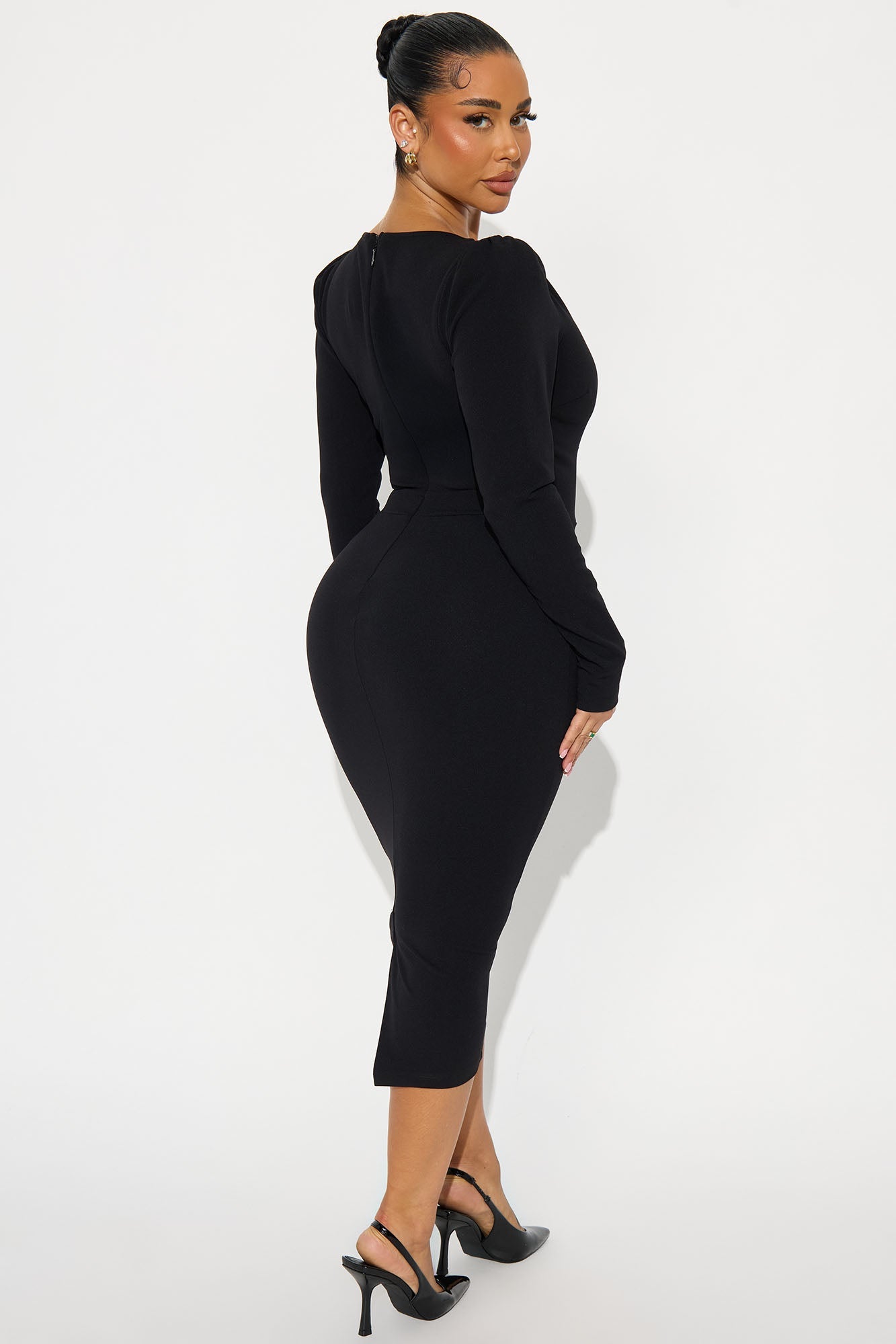 Presley Long Sleeve Midi Dress - Black