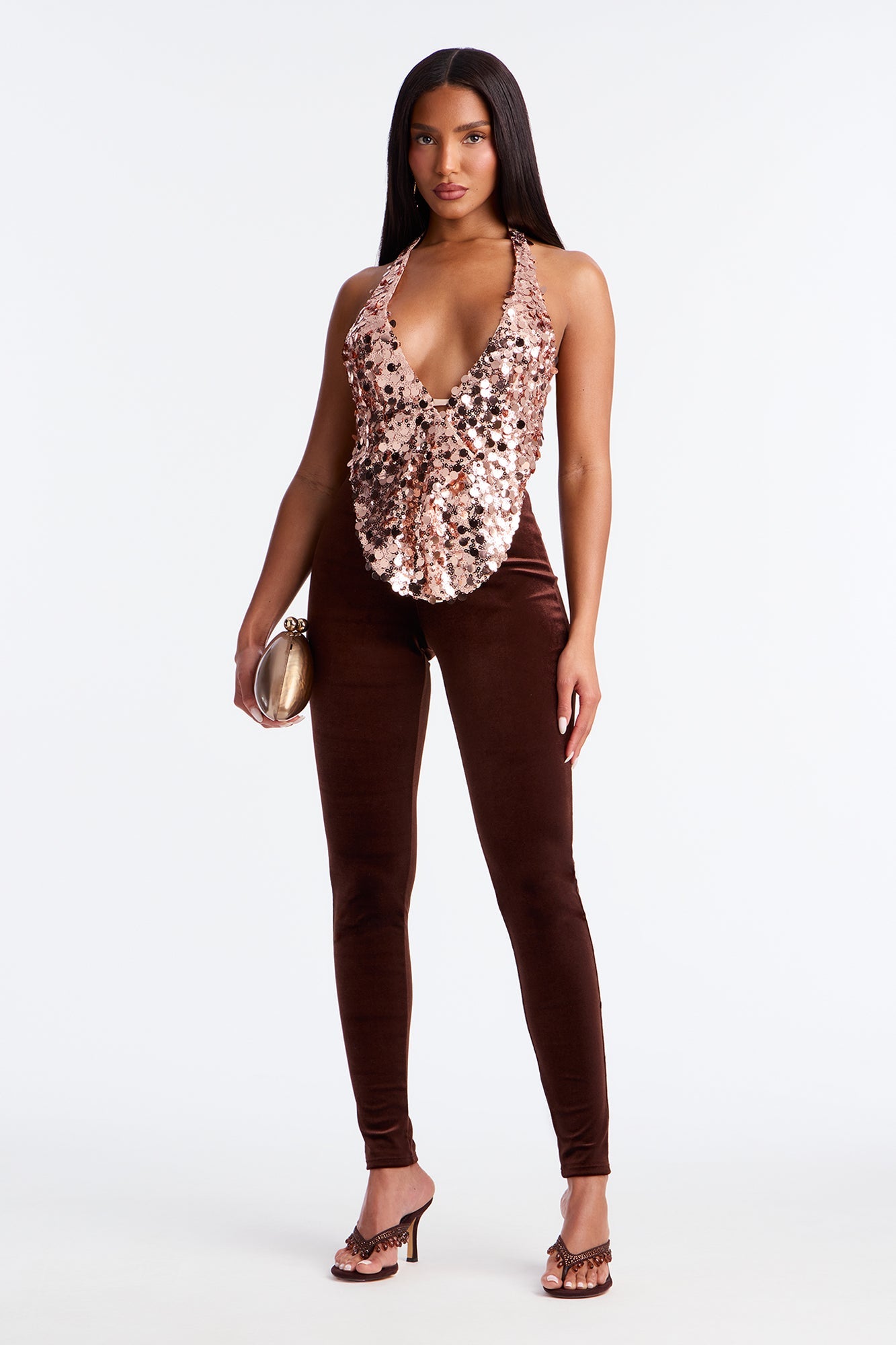Prudence Sequin Open Back Halter Top - Champagne