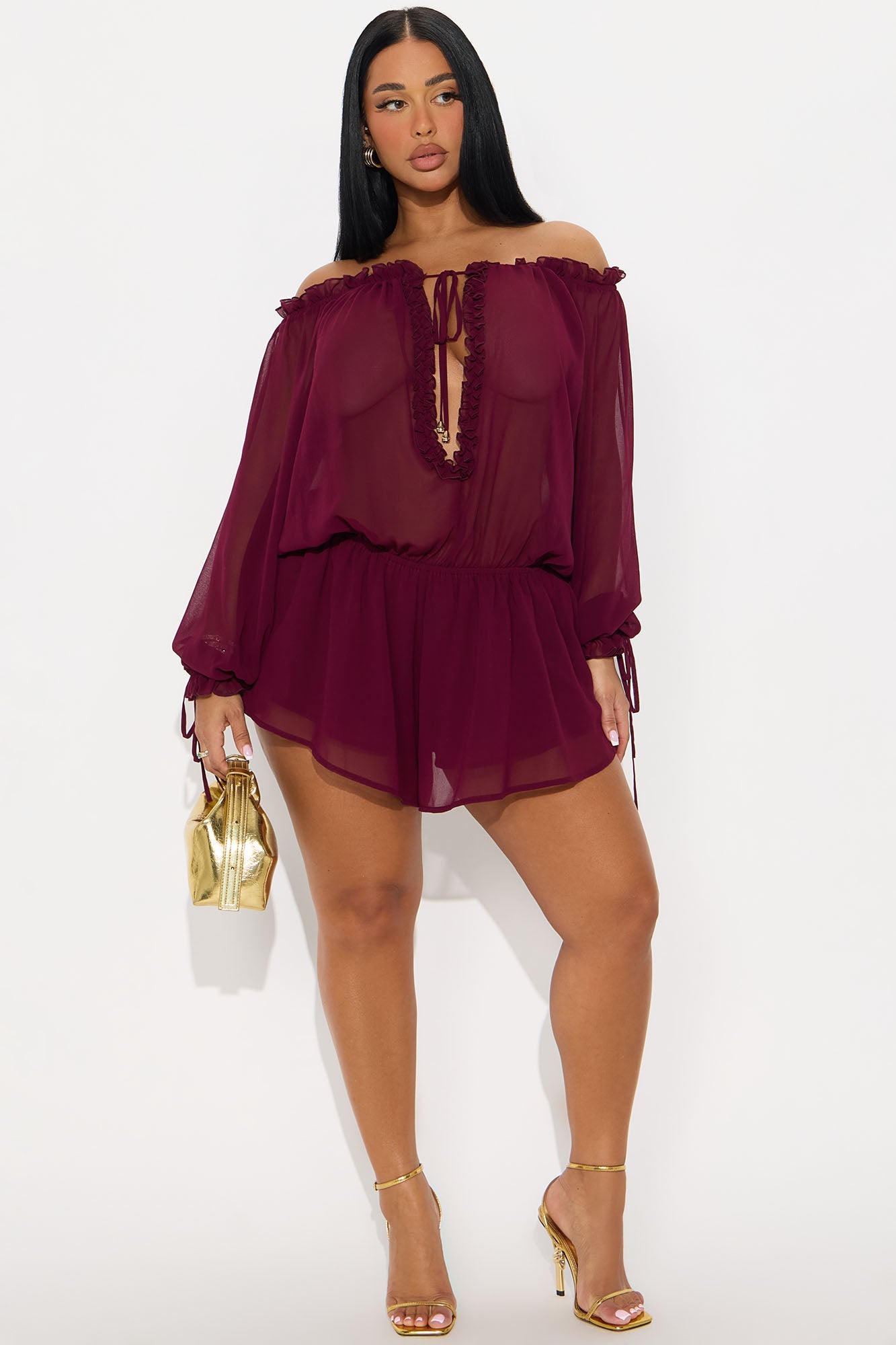 Queen of Hearts Chiffon Long Sleeve Romper - Wine