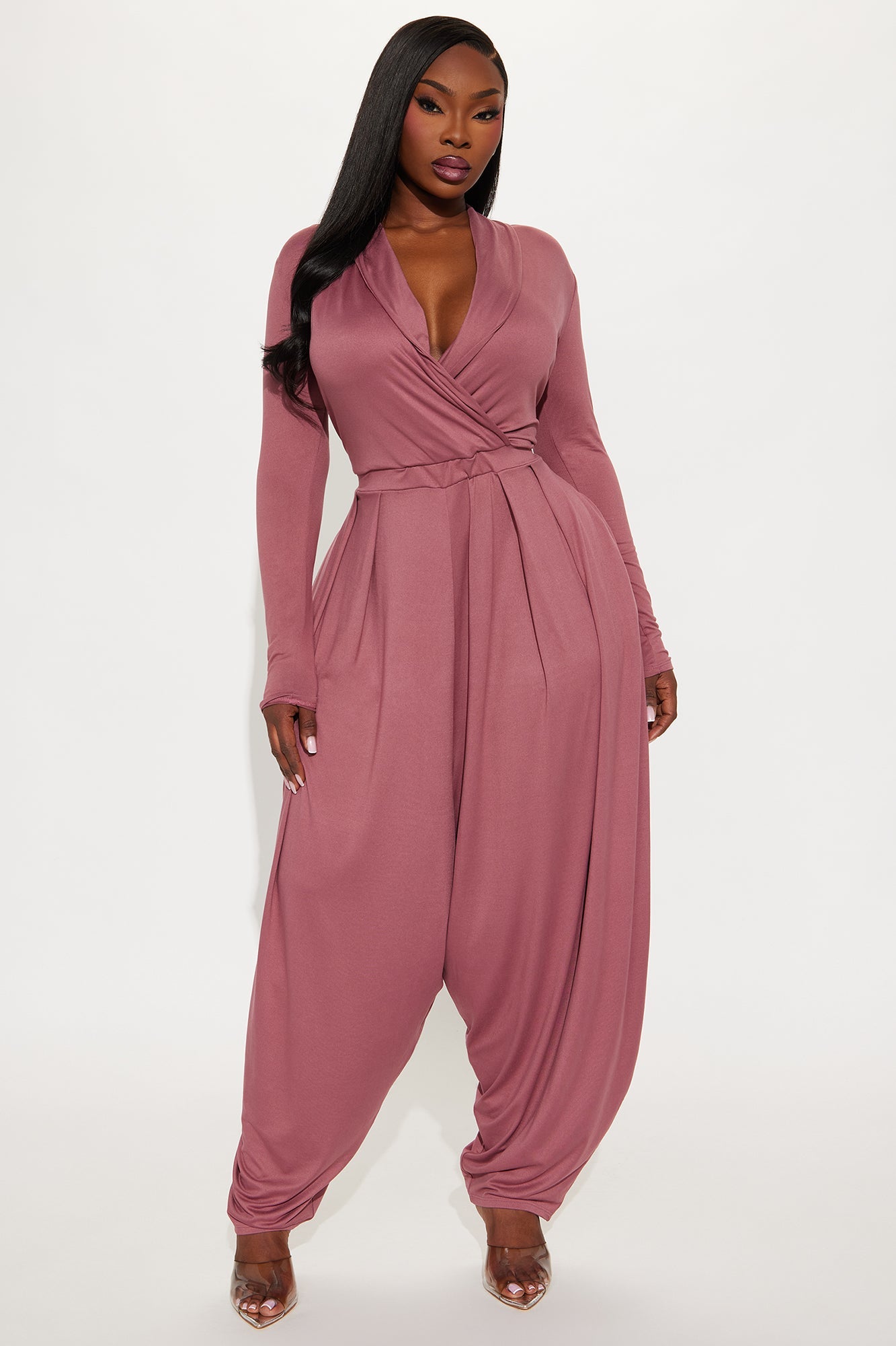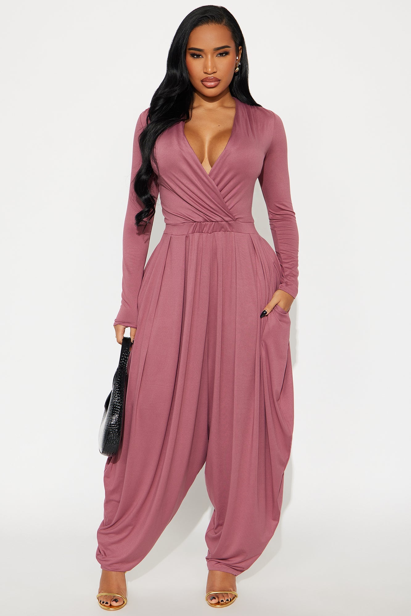 Raelynn Balloon Leg Long Sleeve Jumpsuit - Mauve