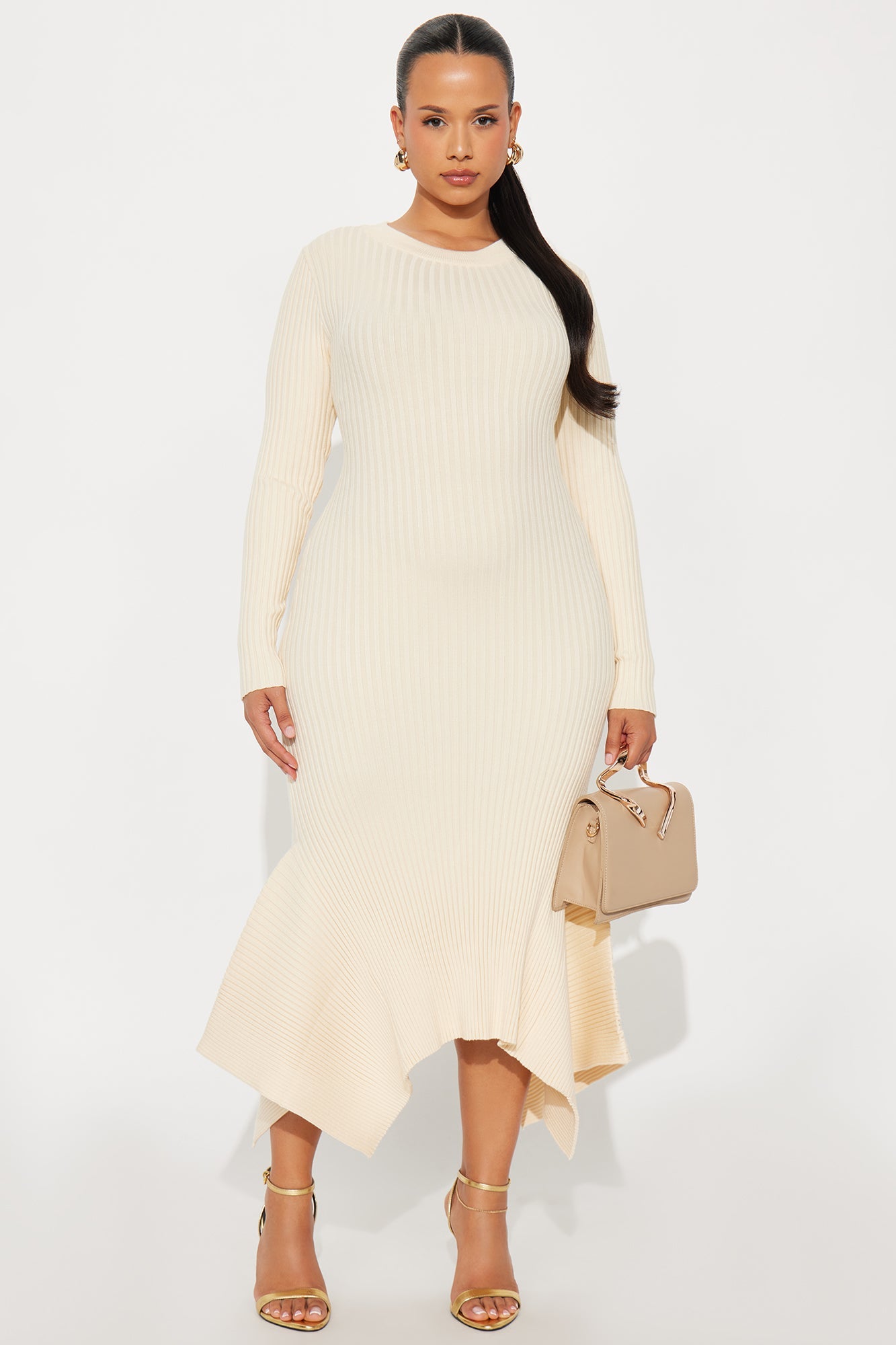 Rare Catch Long Sleeve Ribbed Midi Dress - Cream