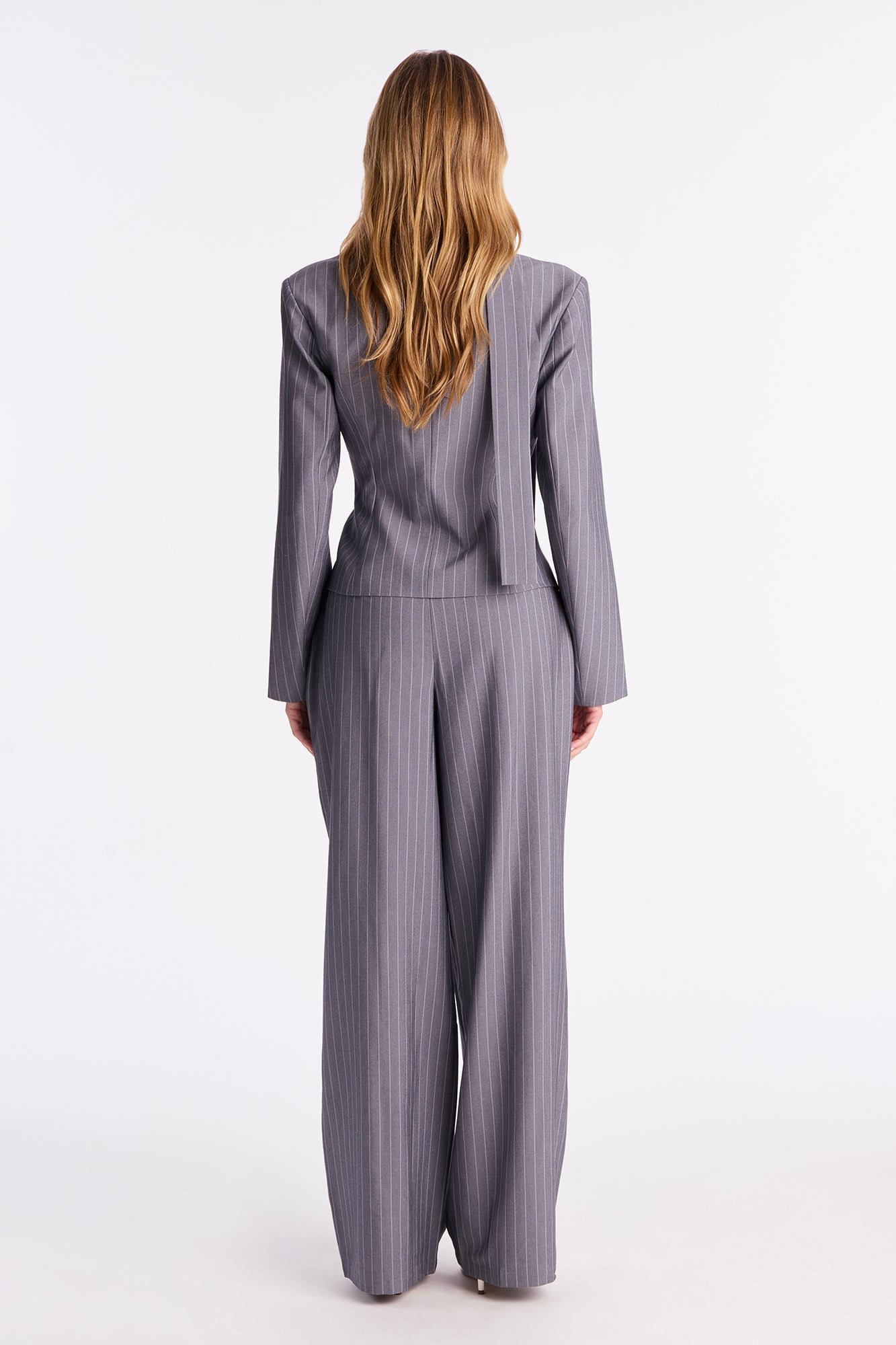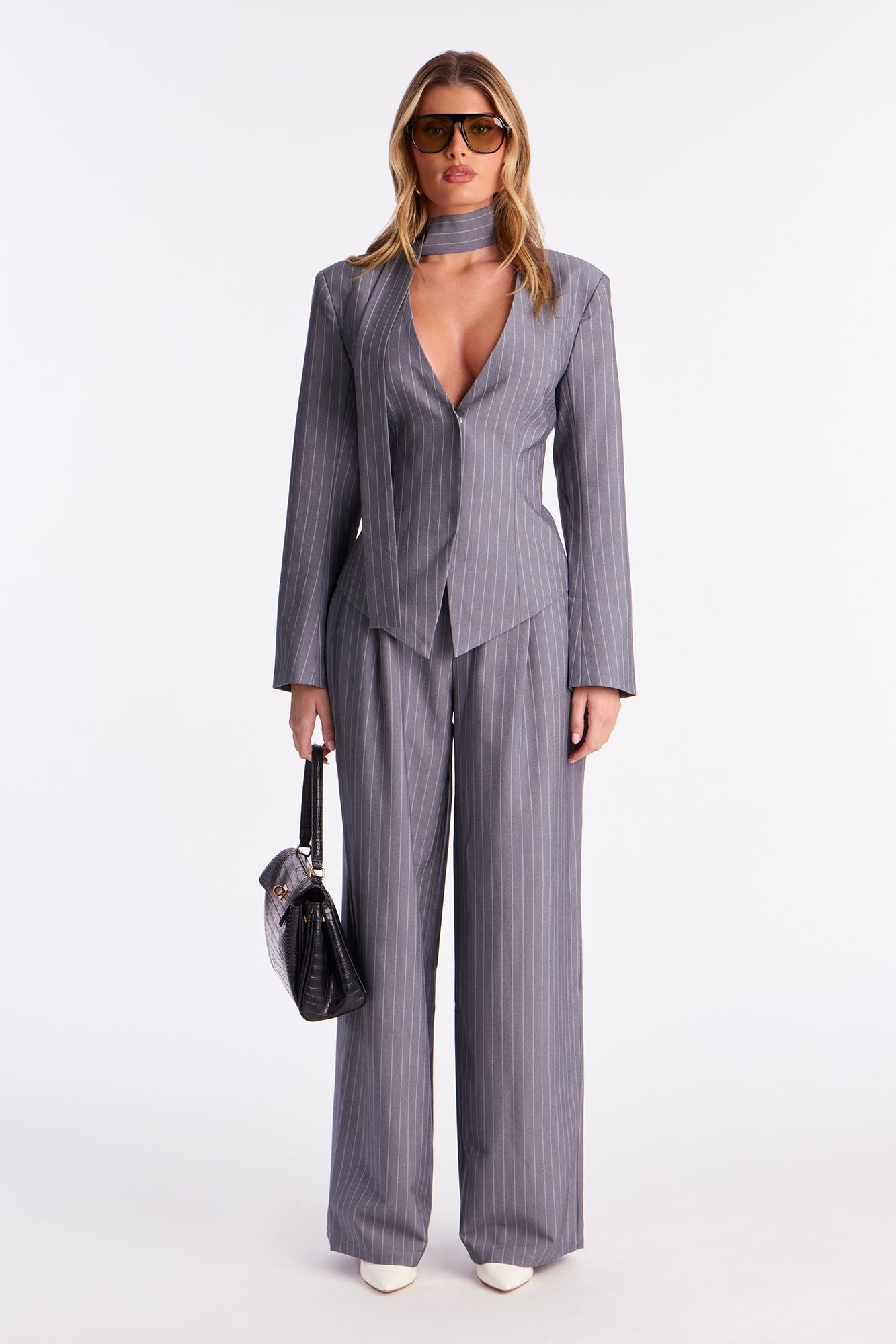 Ready To Rule 3 Piece Pinstripe Blazer Pant Set - Grey