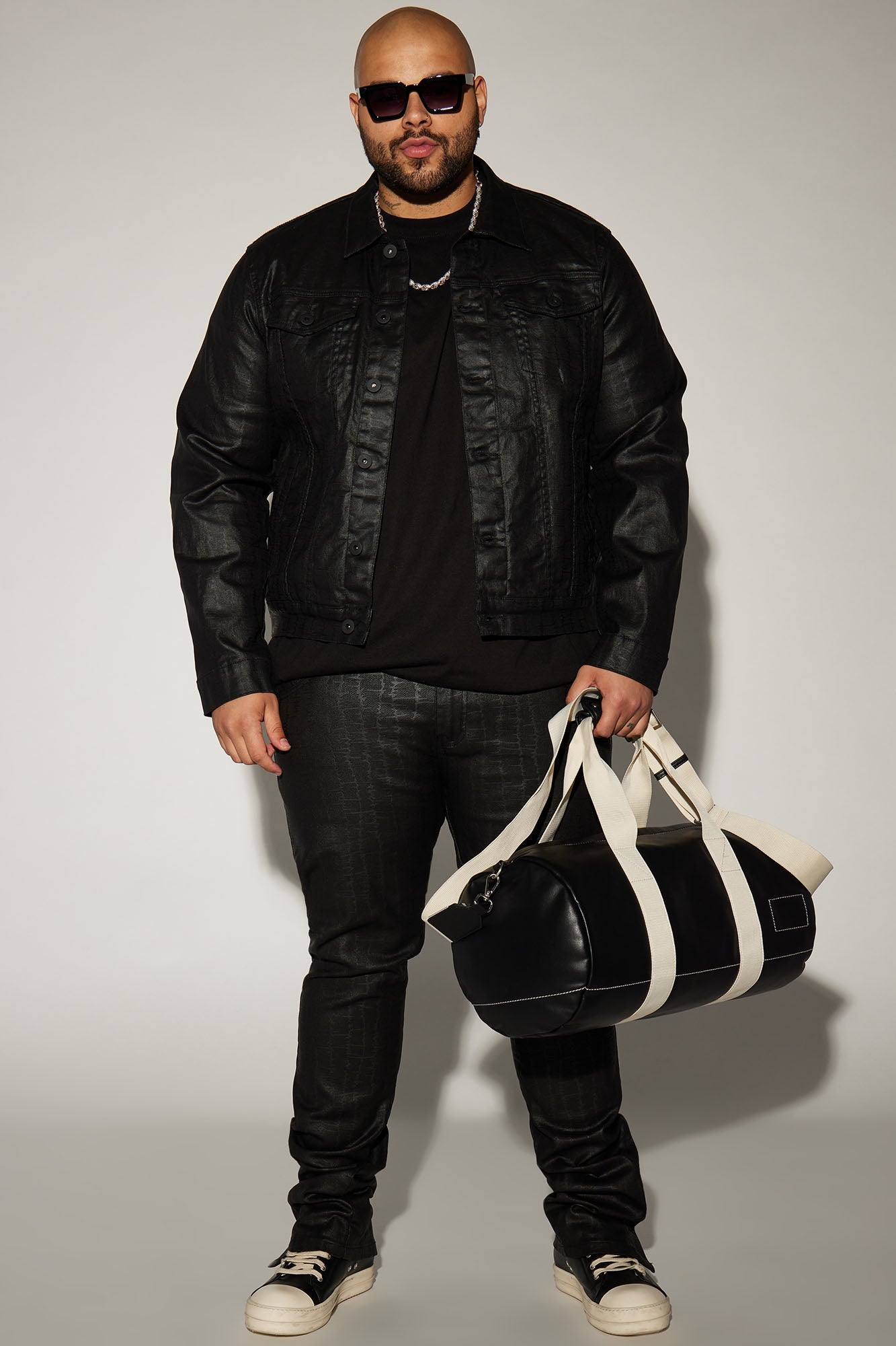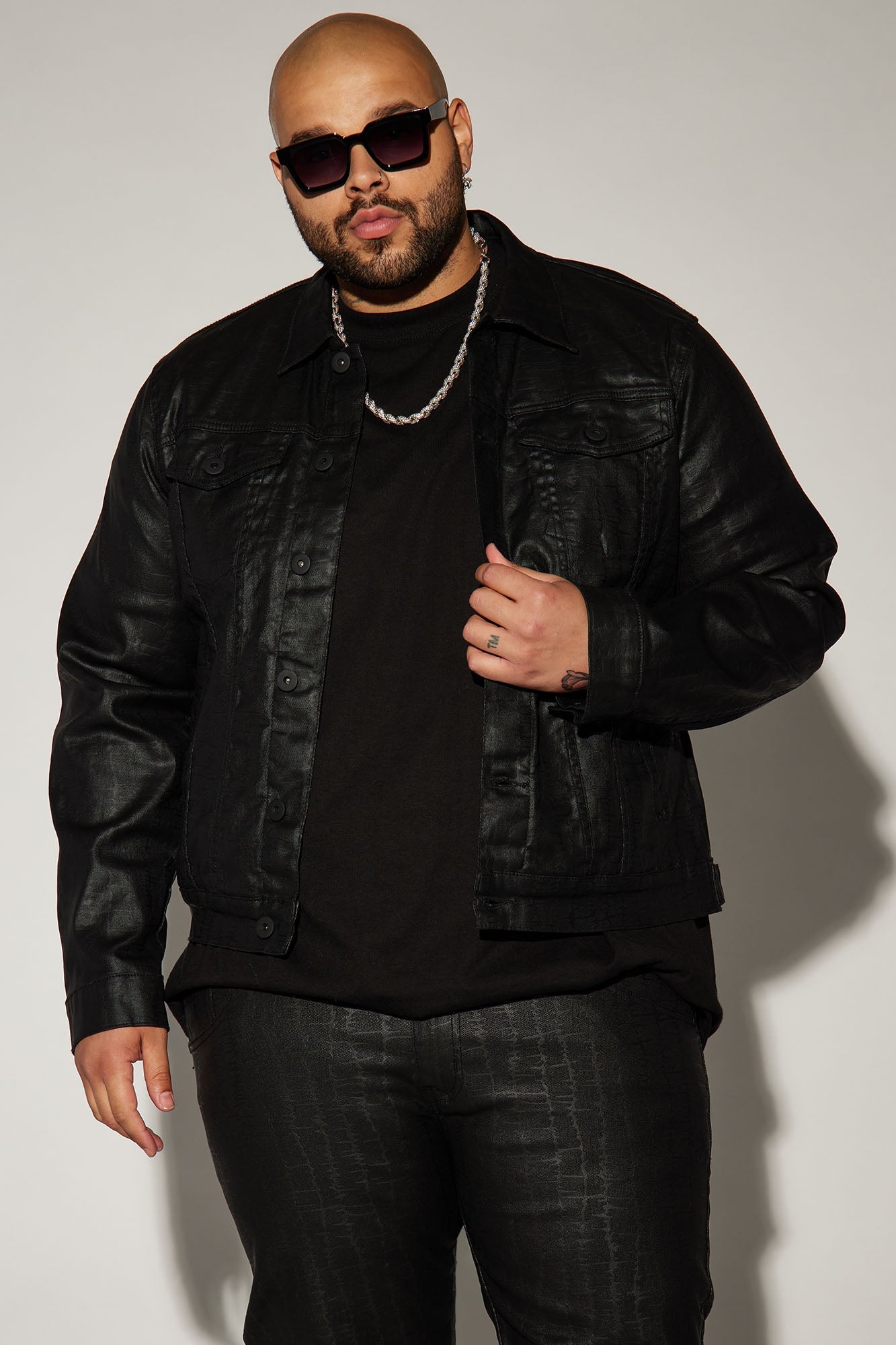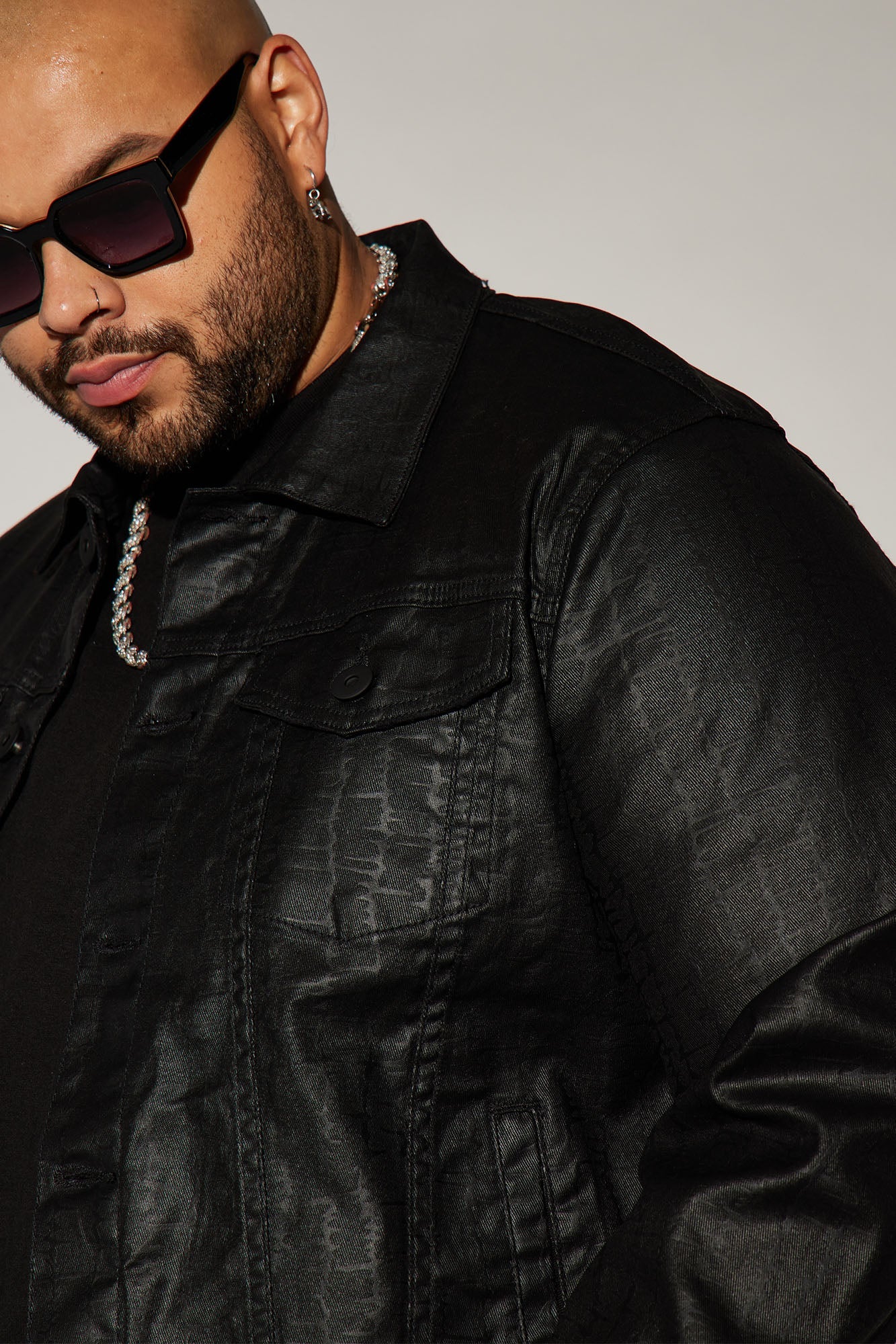 Rebel Like Me Pattern Waxed Trucker Jacket - Black
