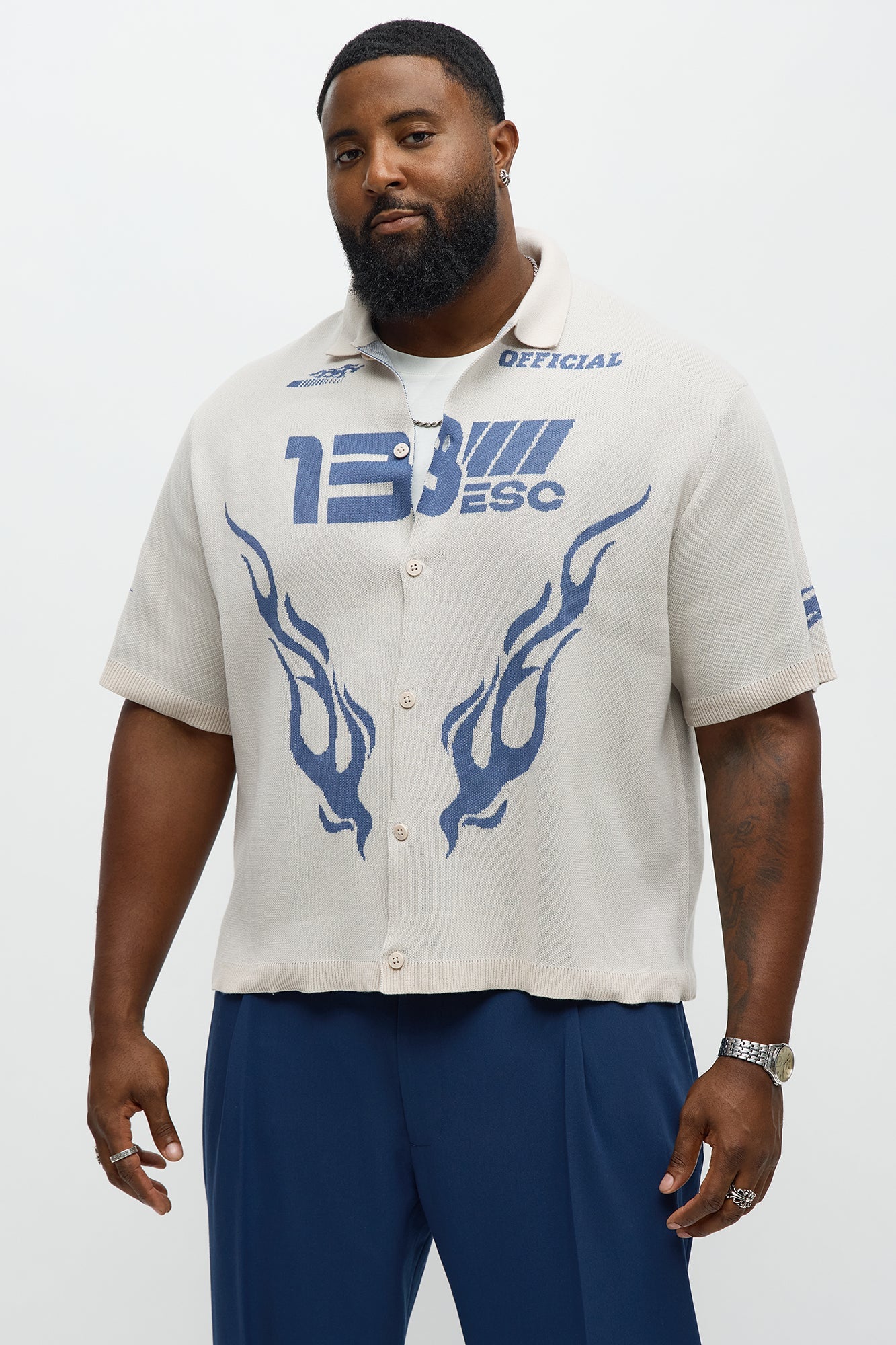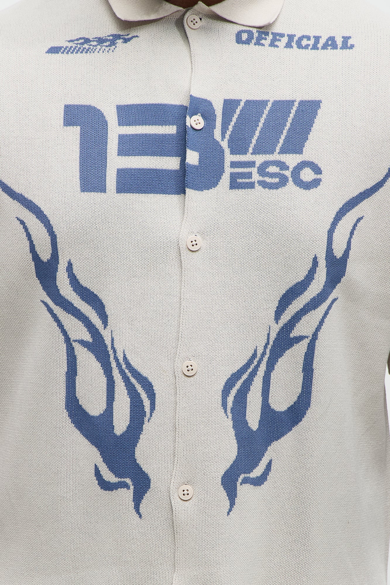 Regular Fit 13 Button Up Sweater Shirt - Cream/combo