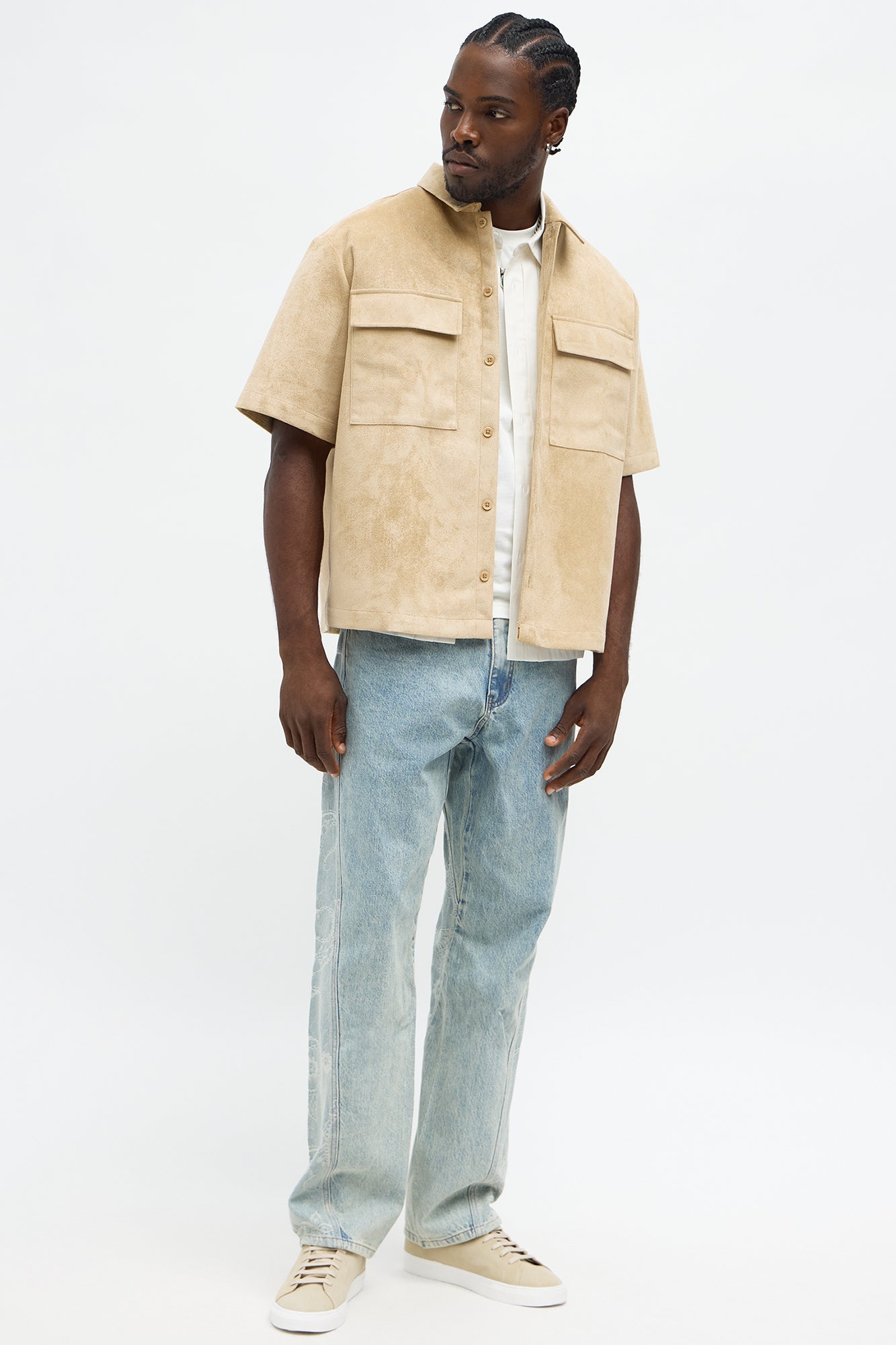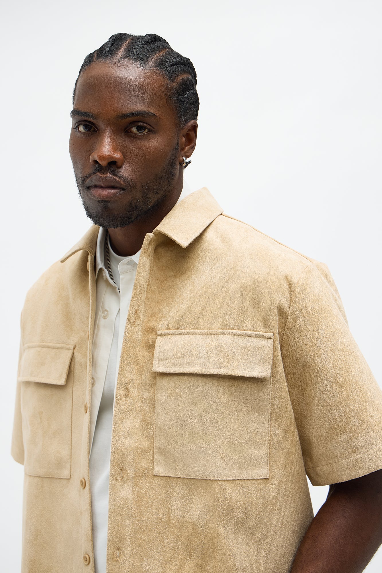 Relaxed Brushed Double Pocket Button Up Shirt - Tan