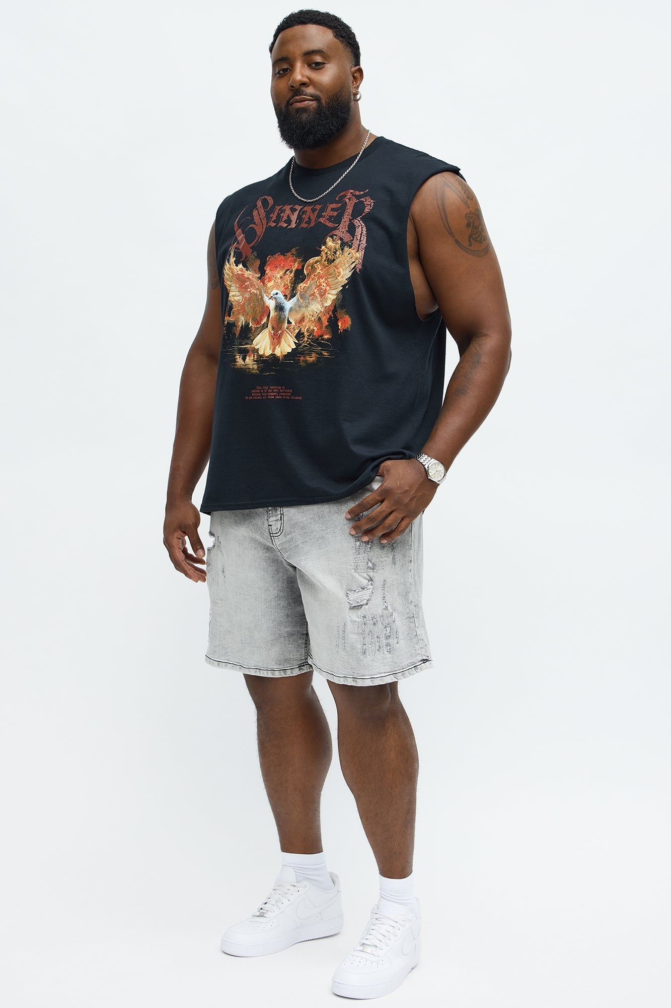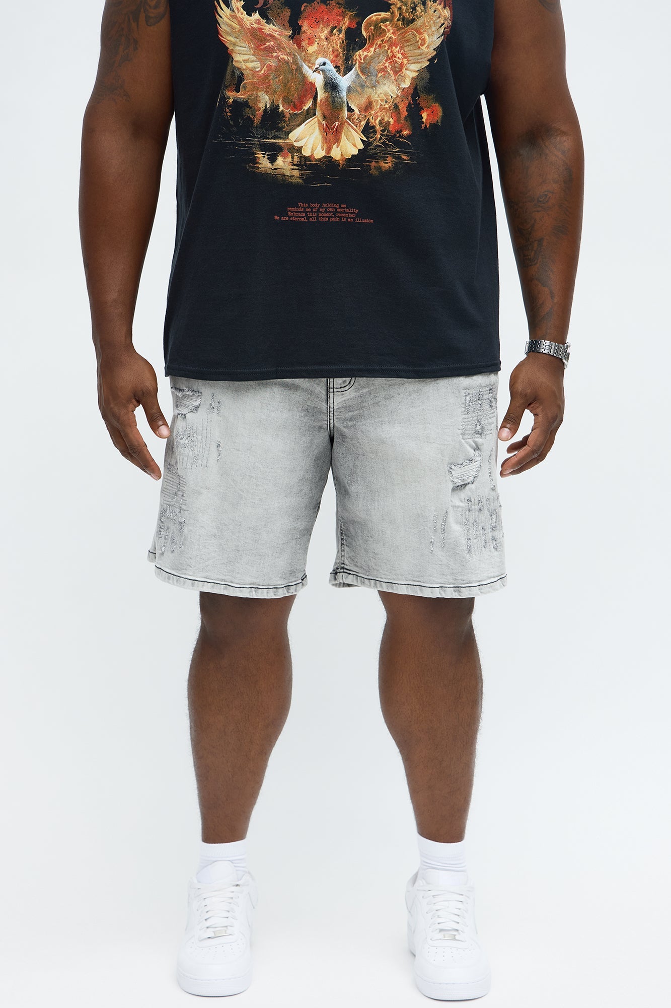 Relaxed Looking Out Ripped And Repair Denim Shorts - Grey