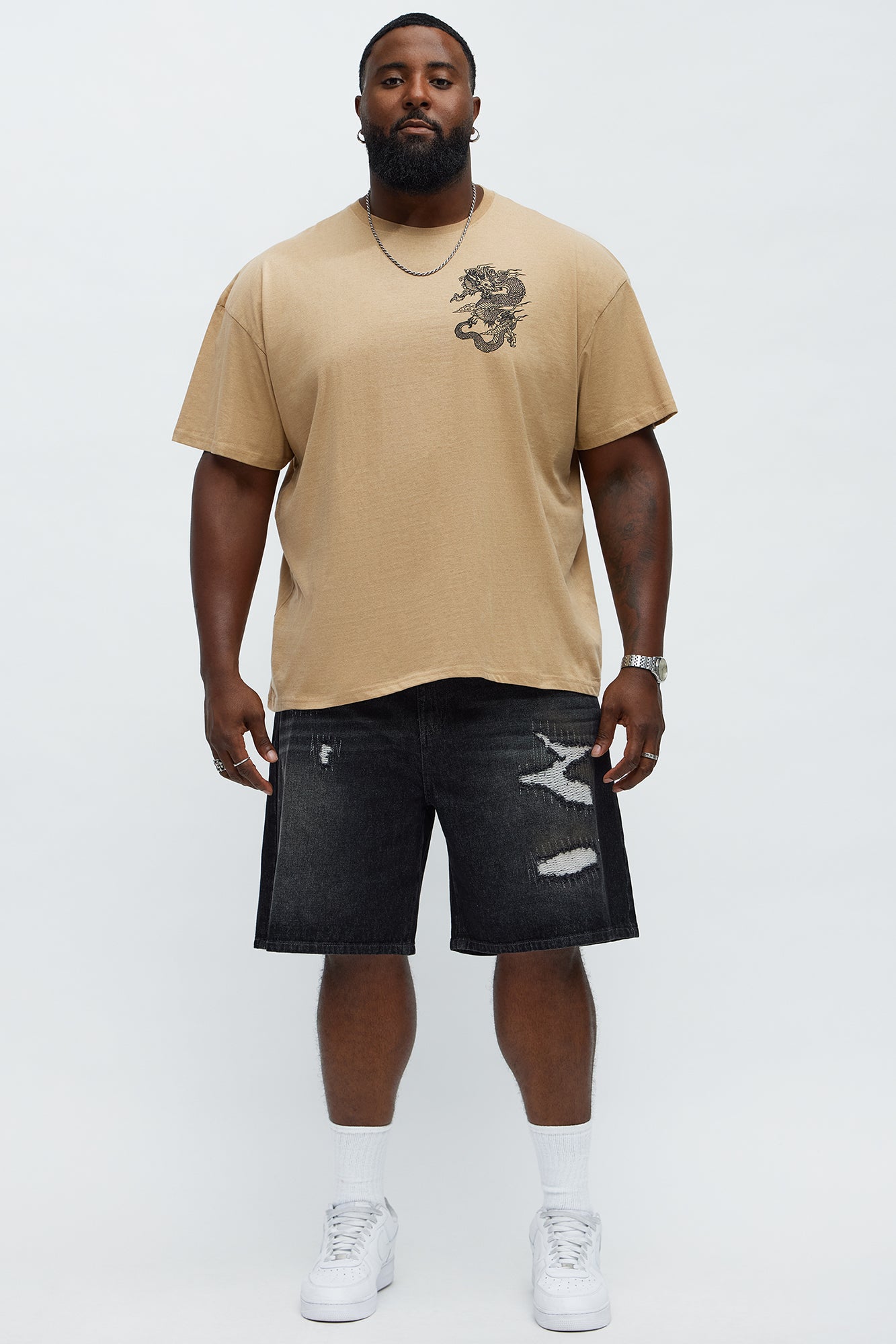 Relaxed Vandal Stitch Distressed Denim Shorts - Black Wash