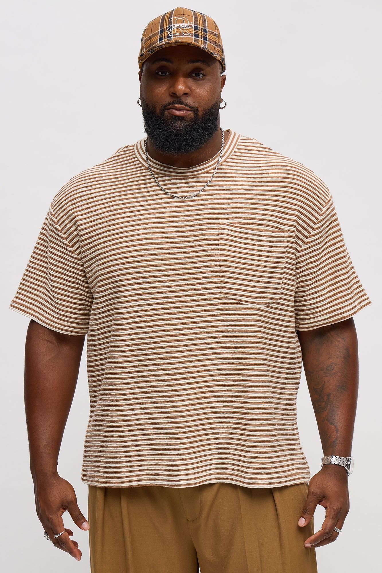 Rib Textured Stripe Relaxed Tee - Brown Combo
