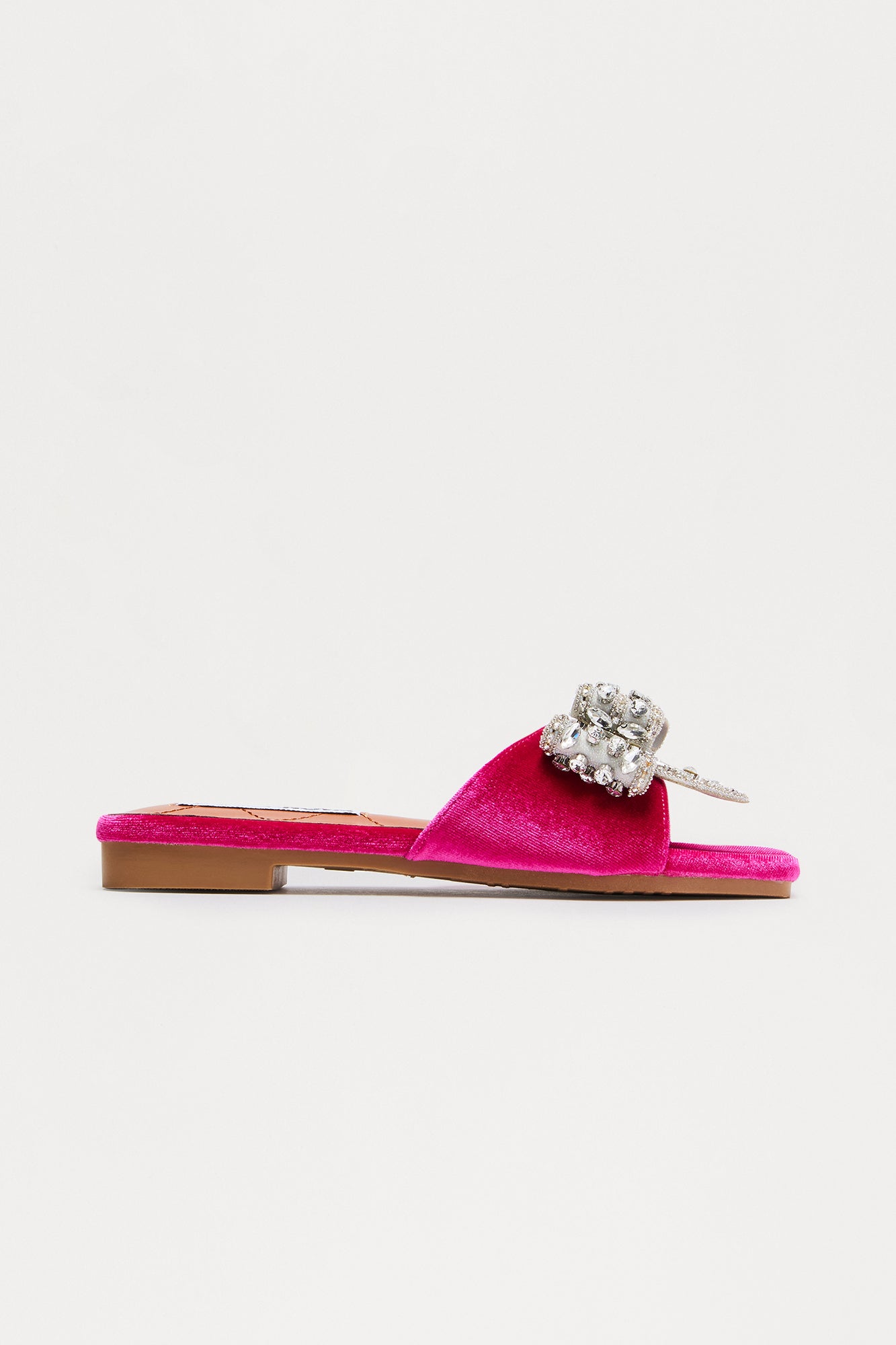 Ribbona Rhinestone Velvet Sandals - Pink