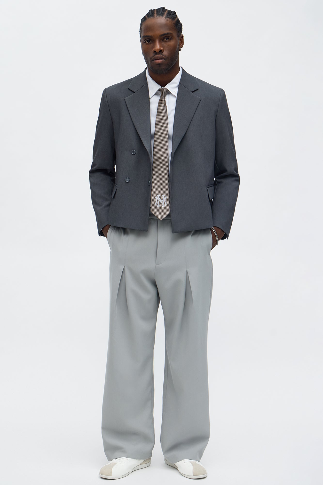 Ronan Cropped Double Breasted Blazer - Charcoal