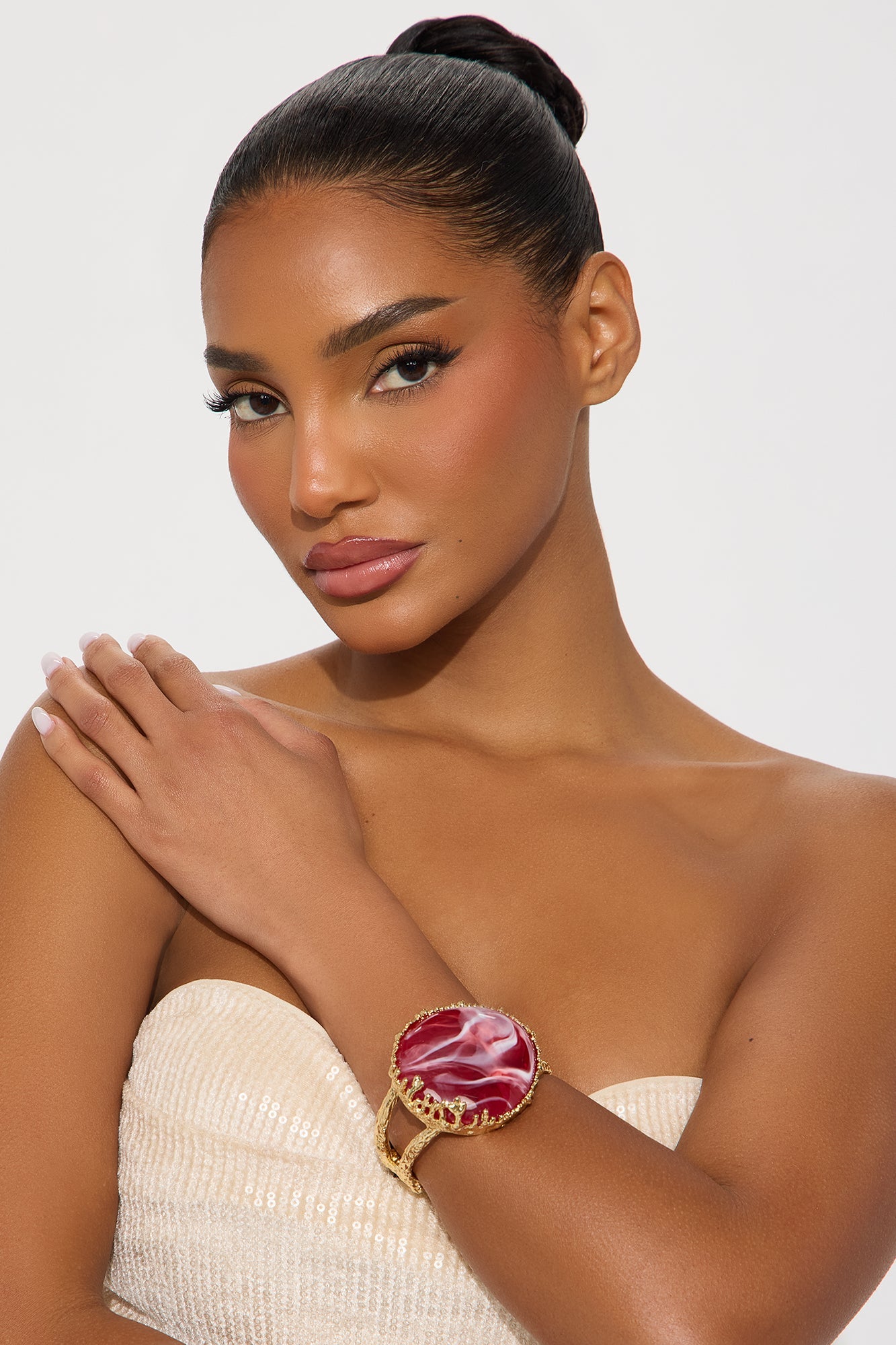Royal Grip Jeweled Cuff Bracelet - Gold/Red