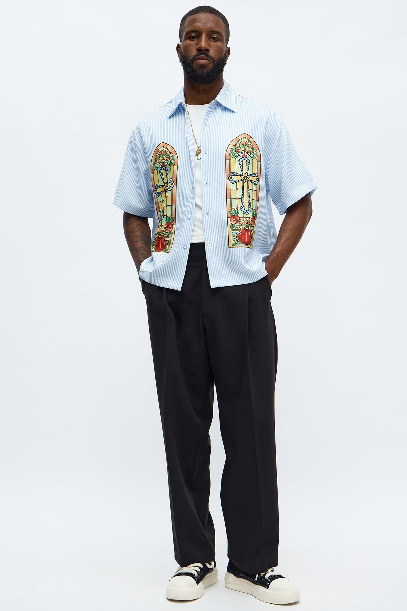 Saints Stained Glass Short Sleeve Button Up - Blue/combo