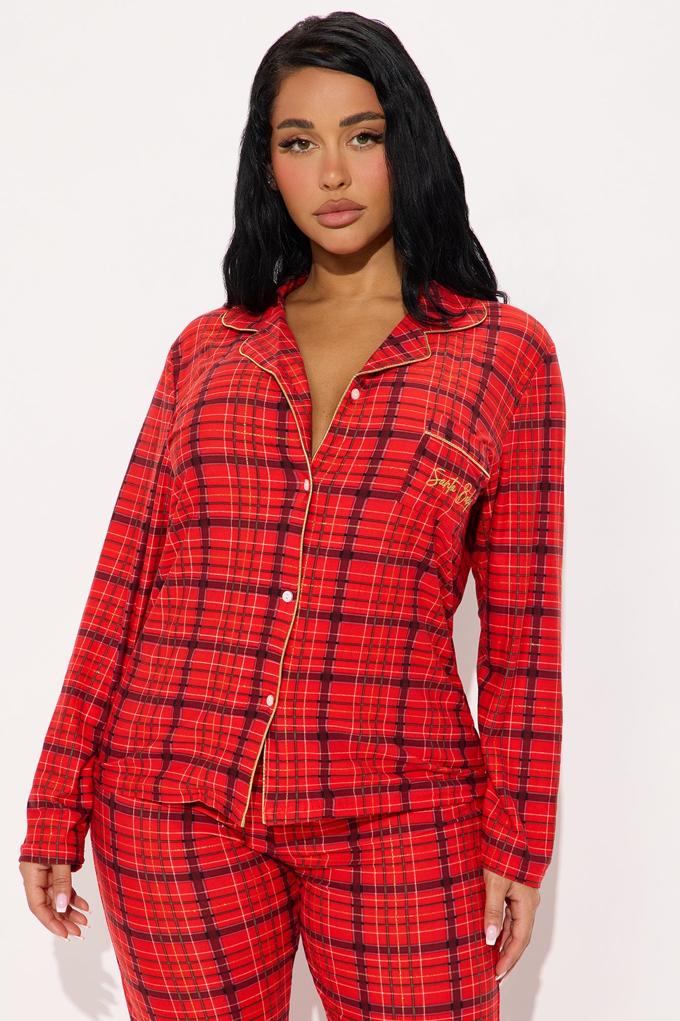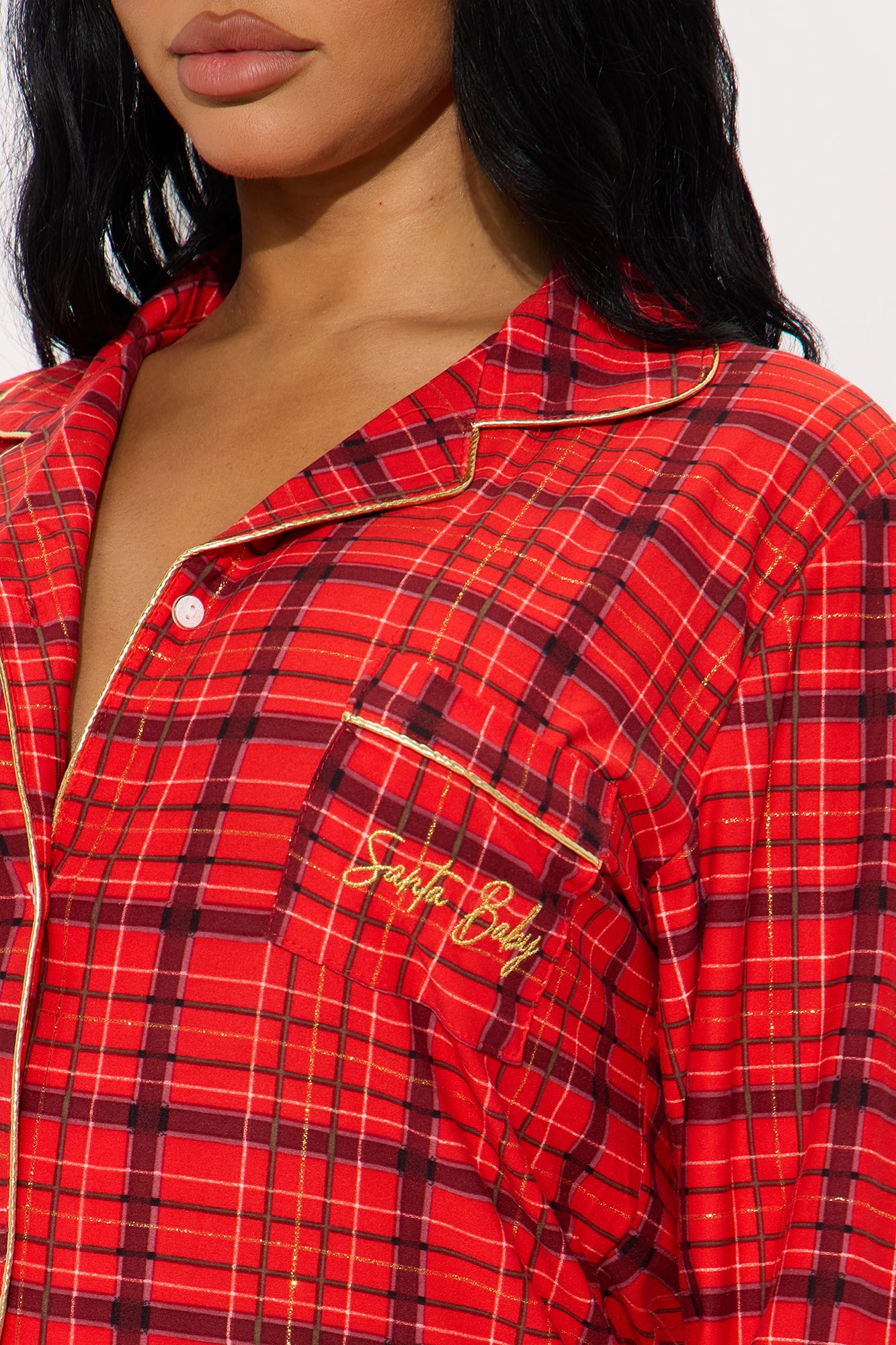 Santa Baby Embroidered Glitter Long Sleeve PJ Pant Set - Red
