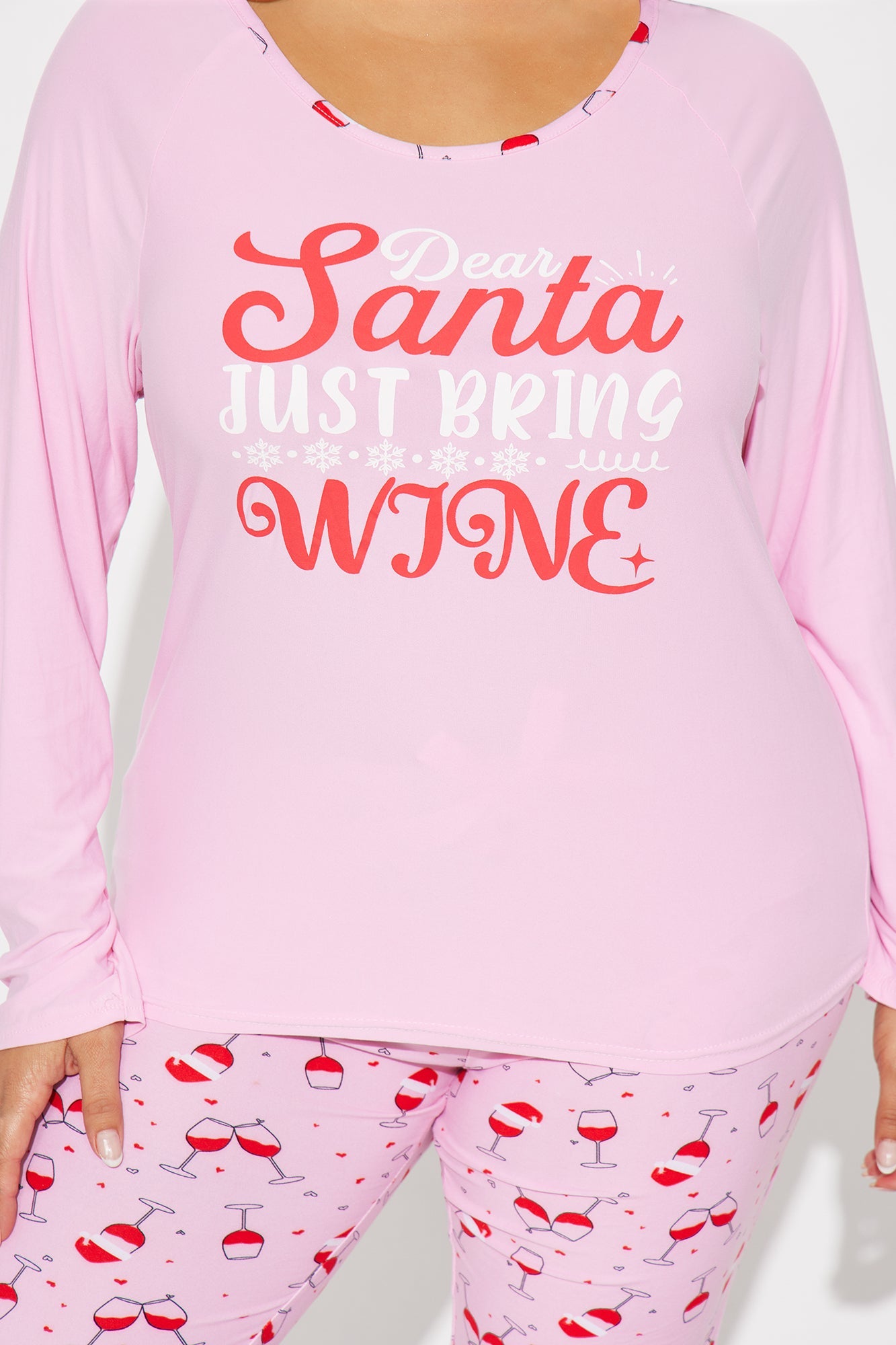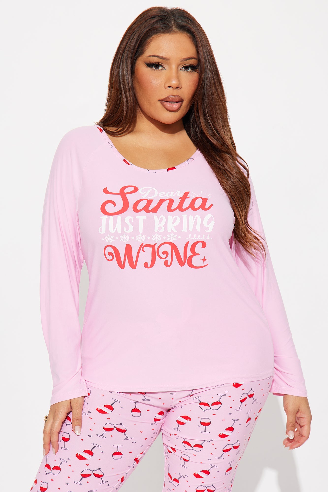 Santa Bring Wine Long Sleeve PJ Jogger Set - Pink