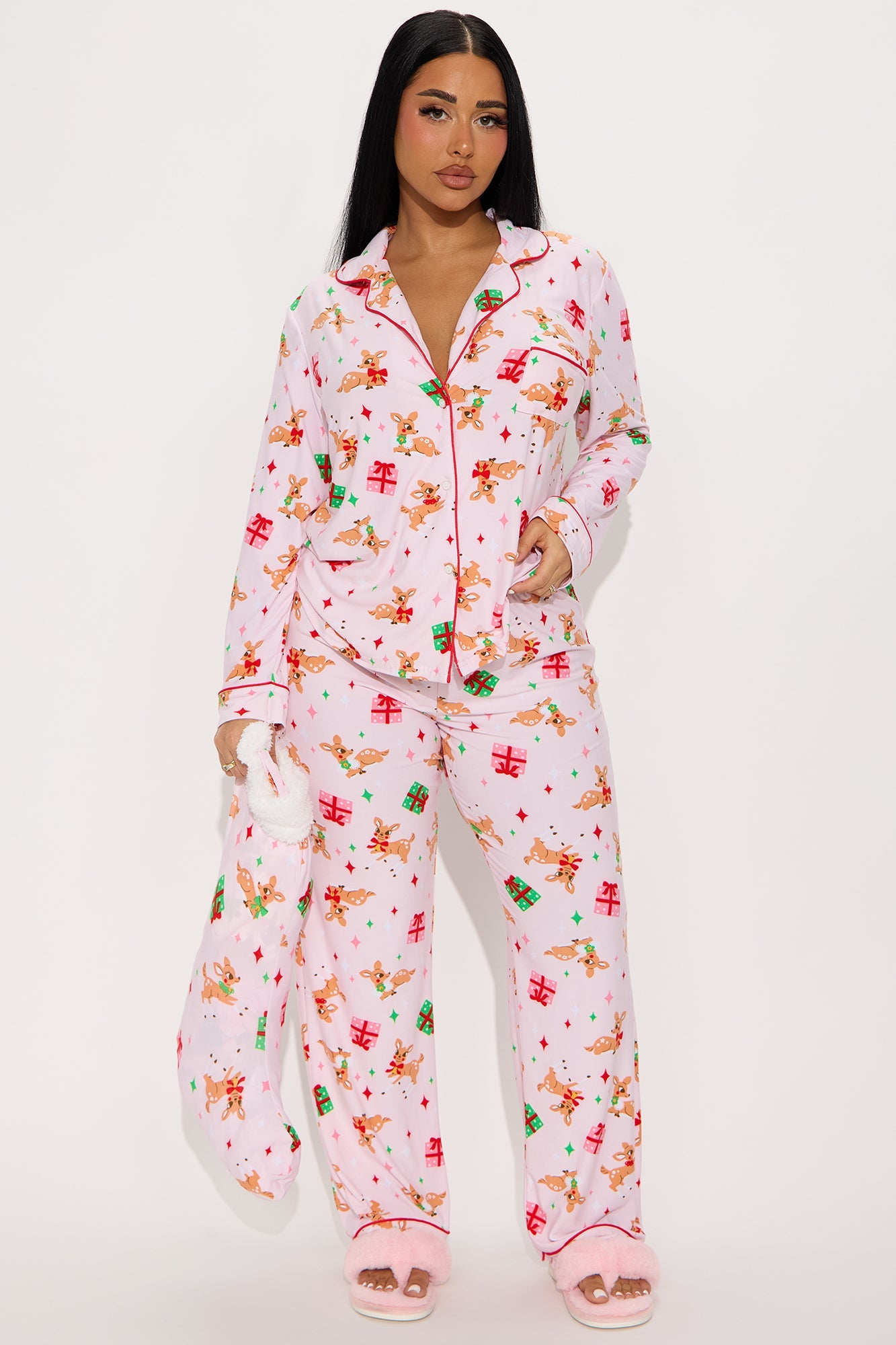 Santa's Reindeer 3 Piece PJ Pant Set - Pink/combo