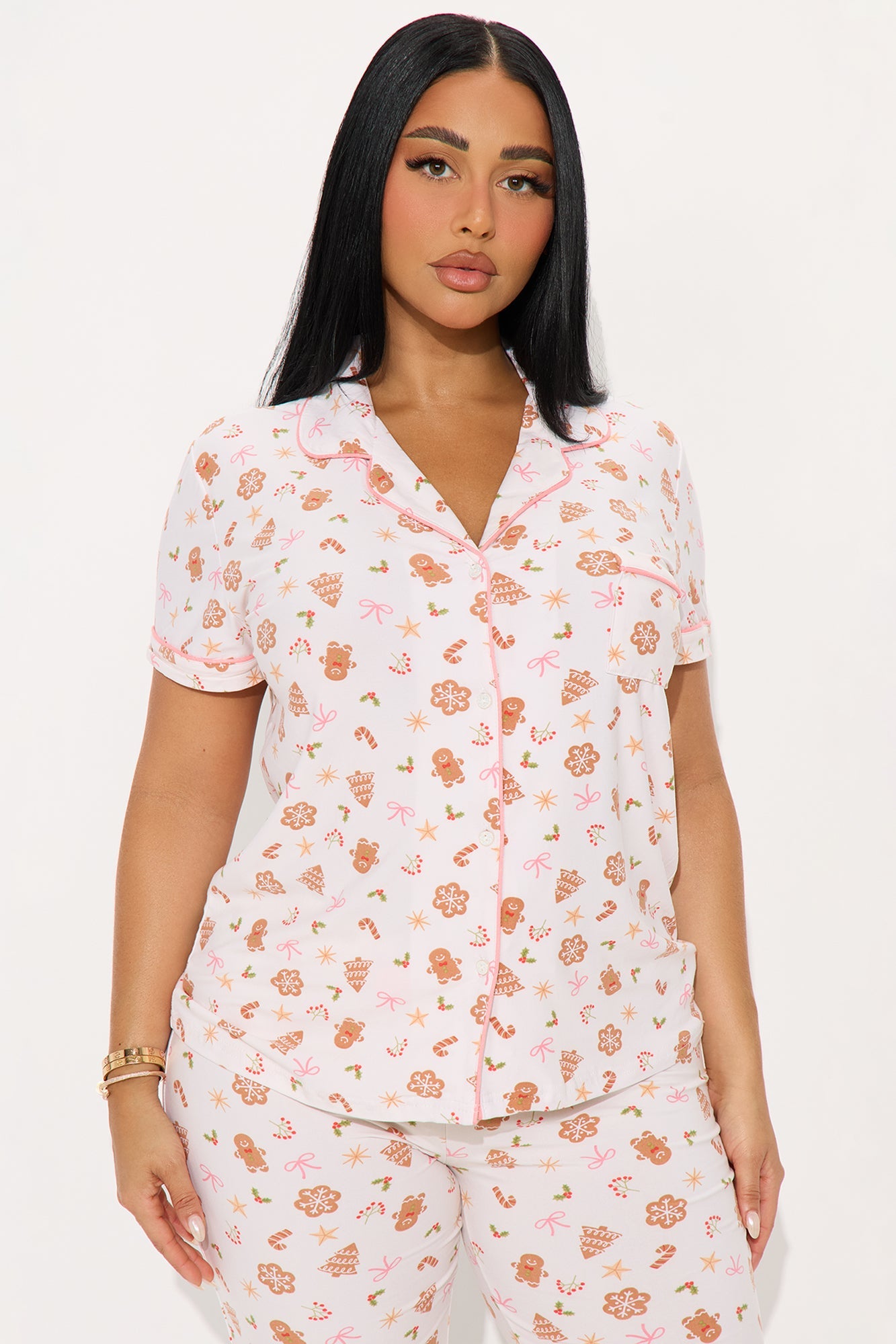 Santa's Treats Short Sleeve PJ Pant Set - Ivory/combo