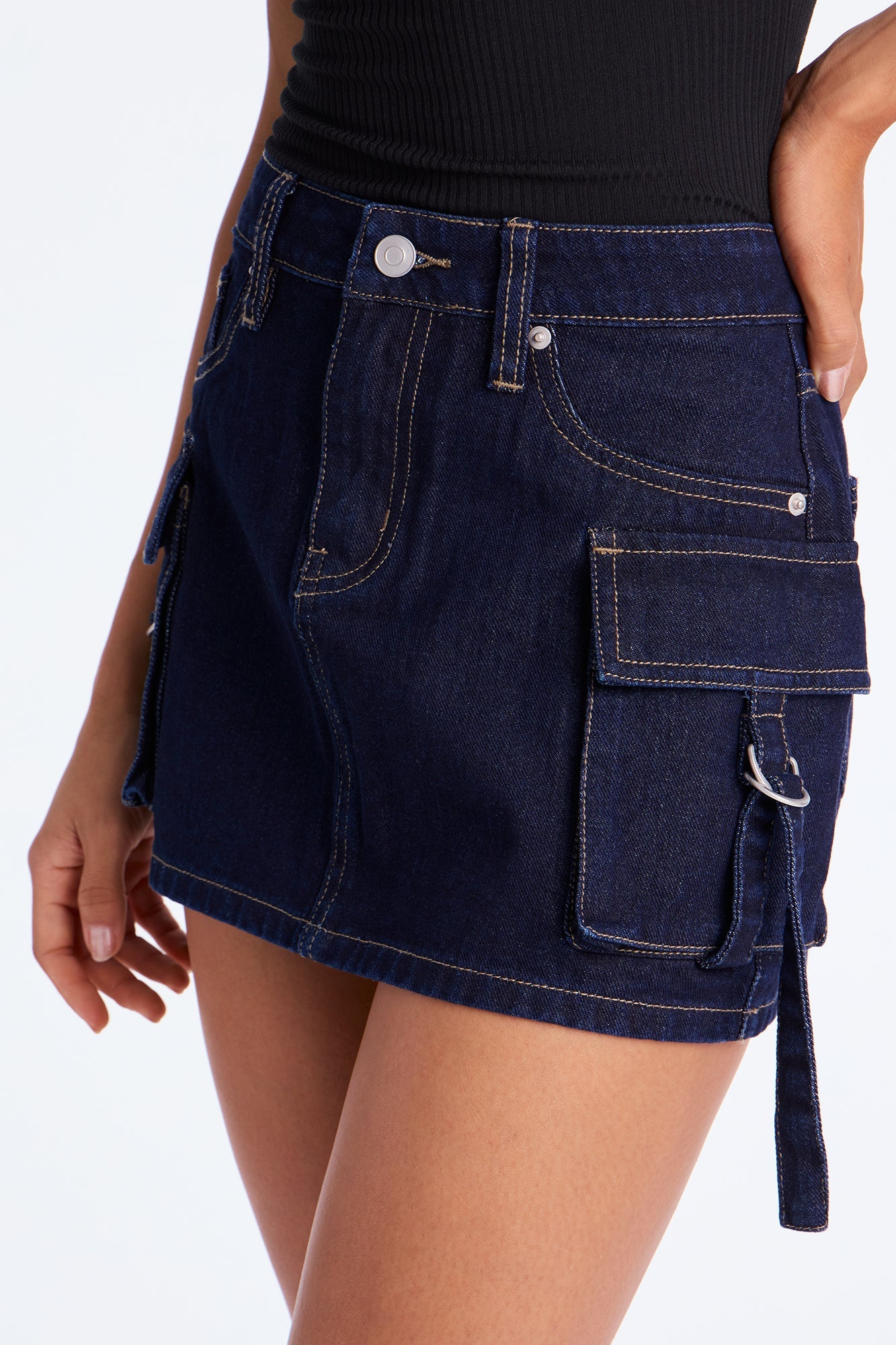 Set New Limits Denim Cargo Mini Skirt - Rinse Blue Wash