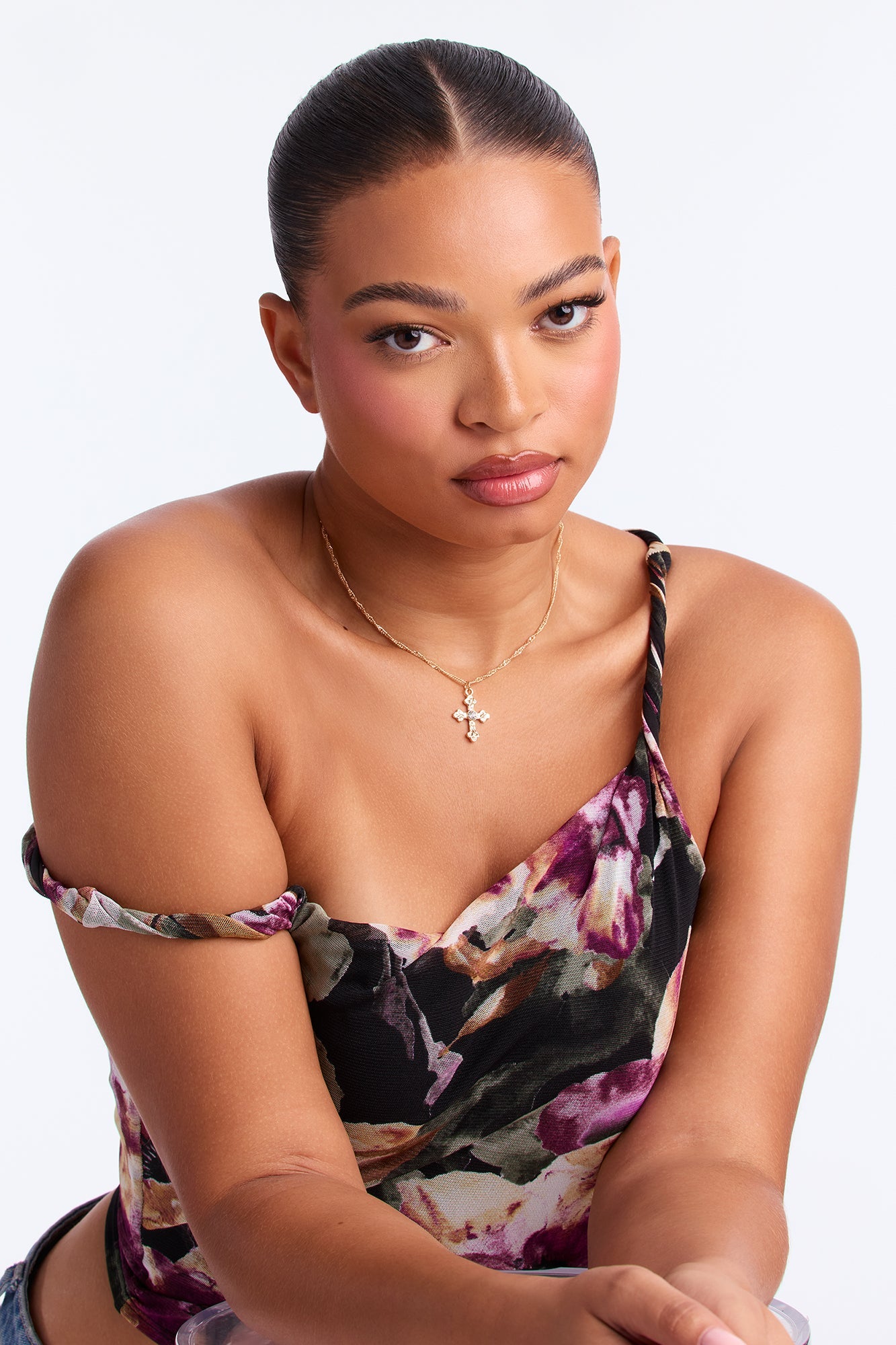 Simply Blessed Rhinestone Cross Pendant Necklace - Gold
