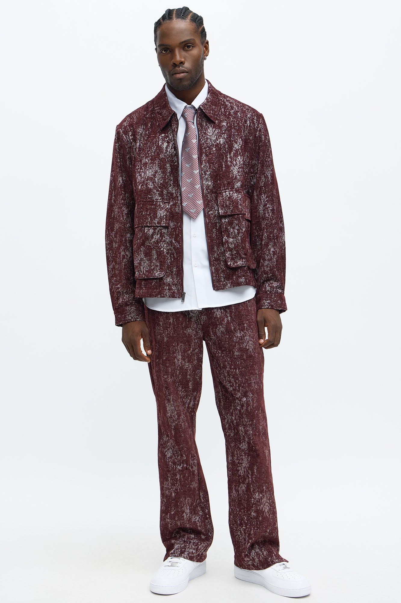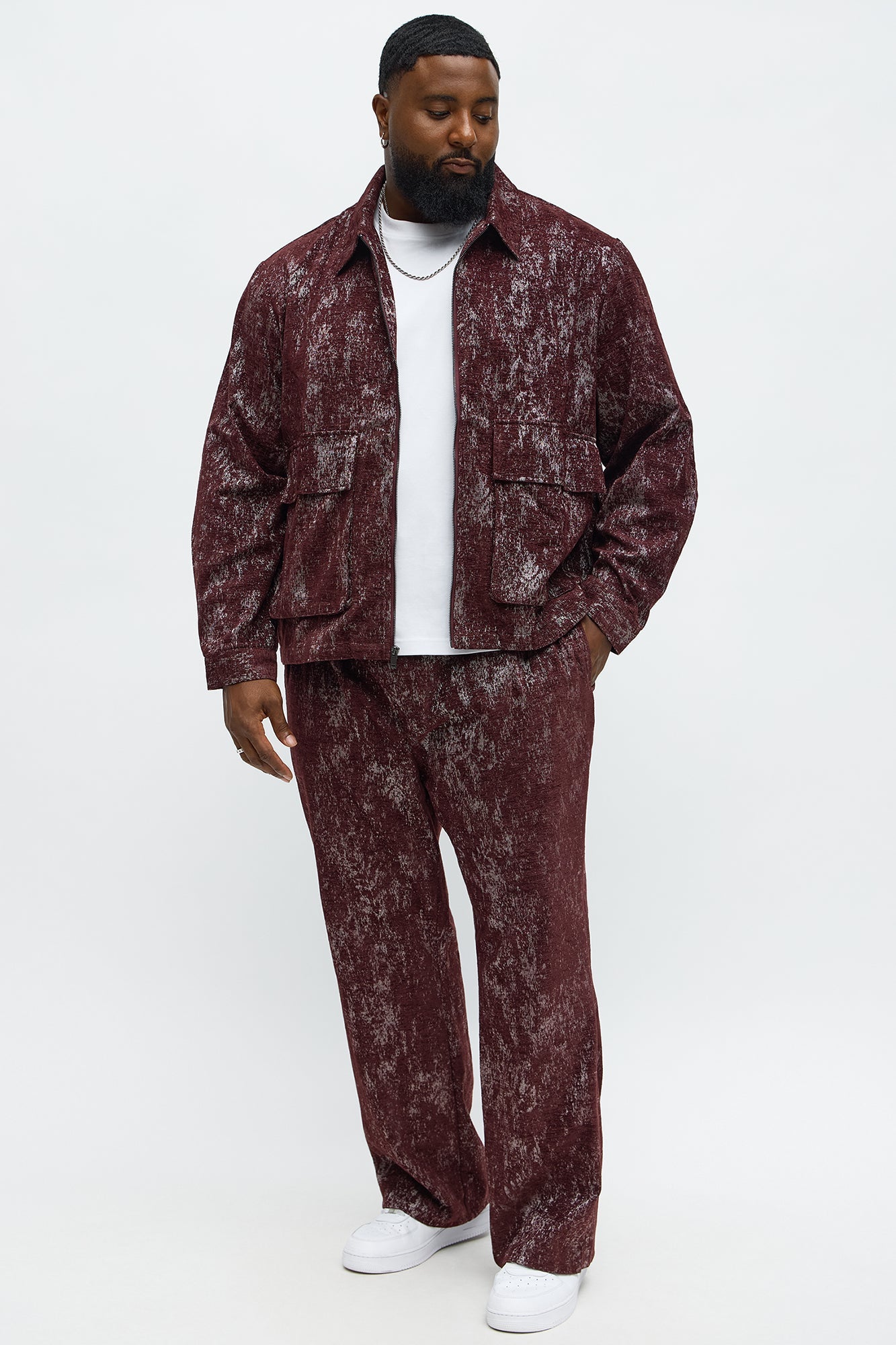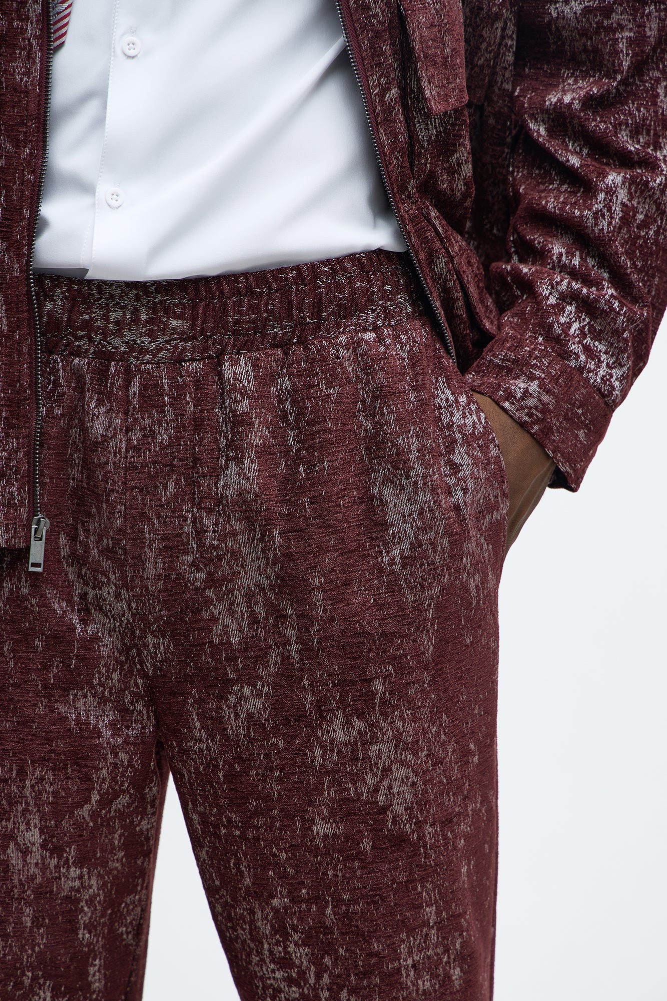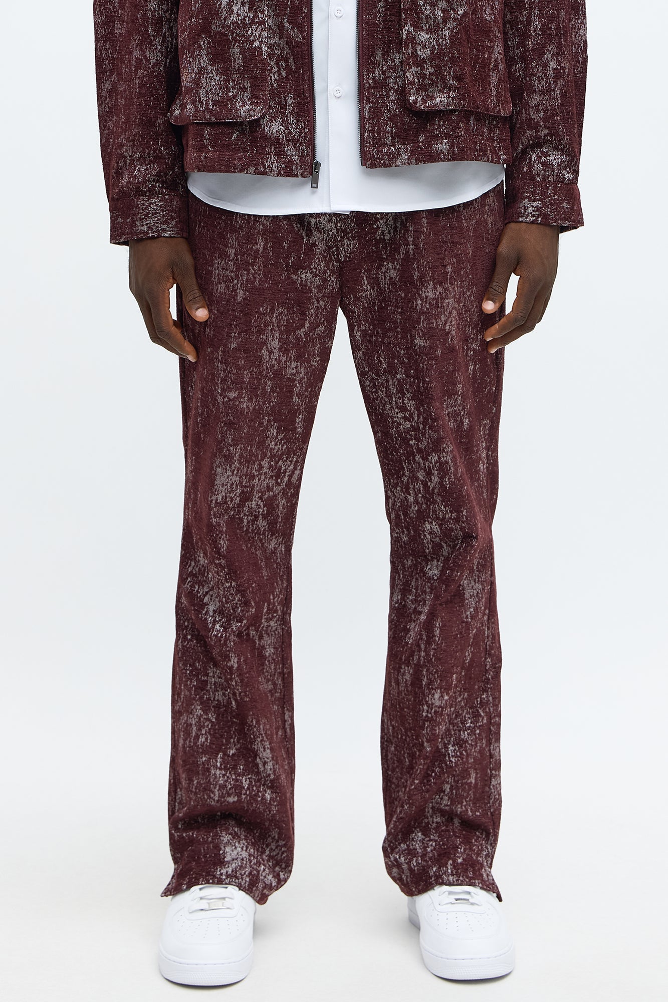 Slim Flare Slit Velvet Heathered Pant - Burgundy