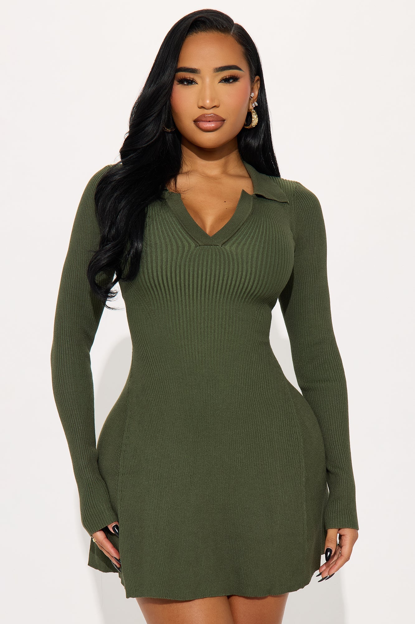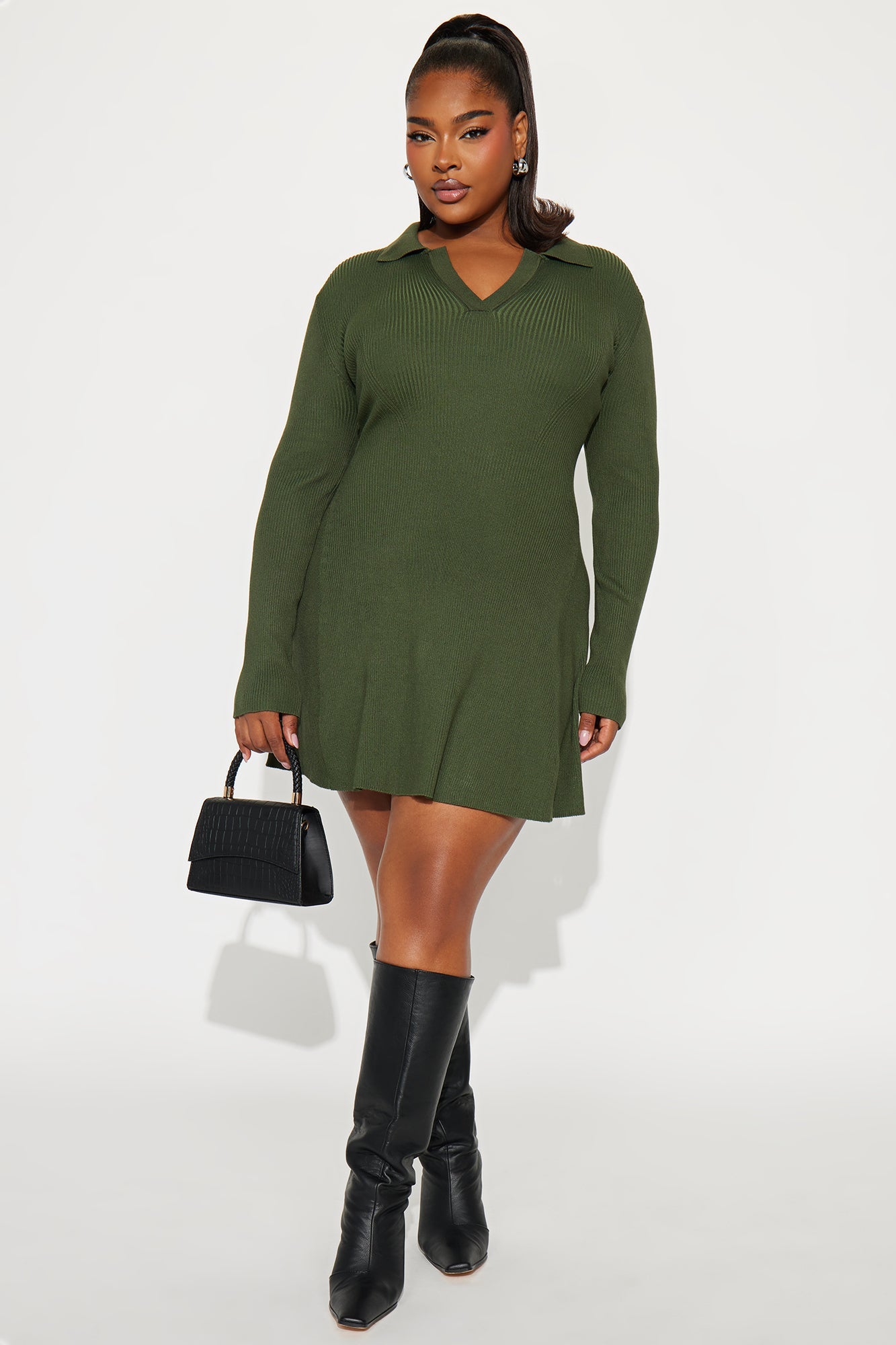 Soft Season Long Sleeve Sweater Mini Dress - Olive