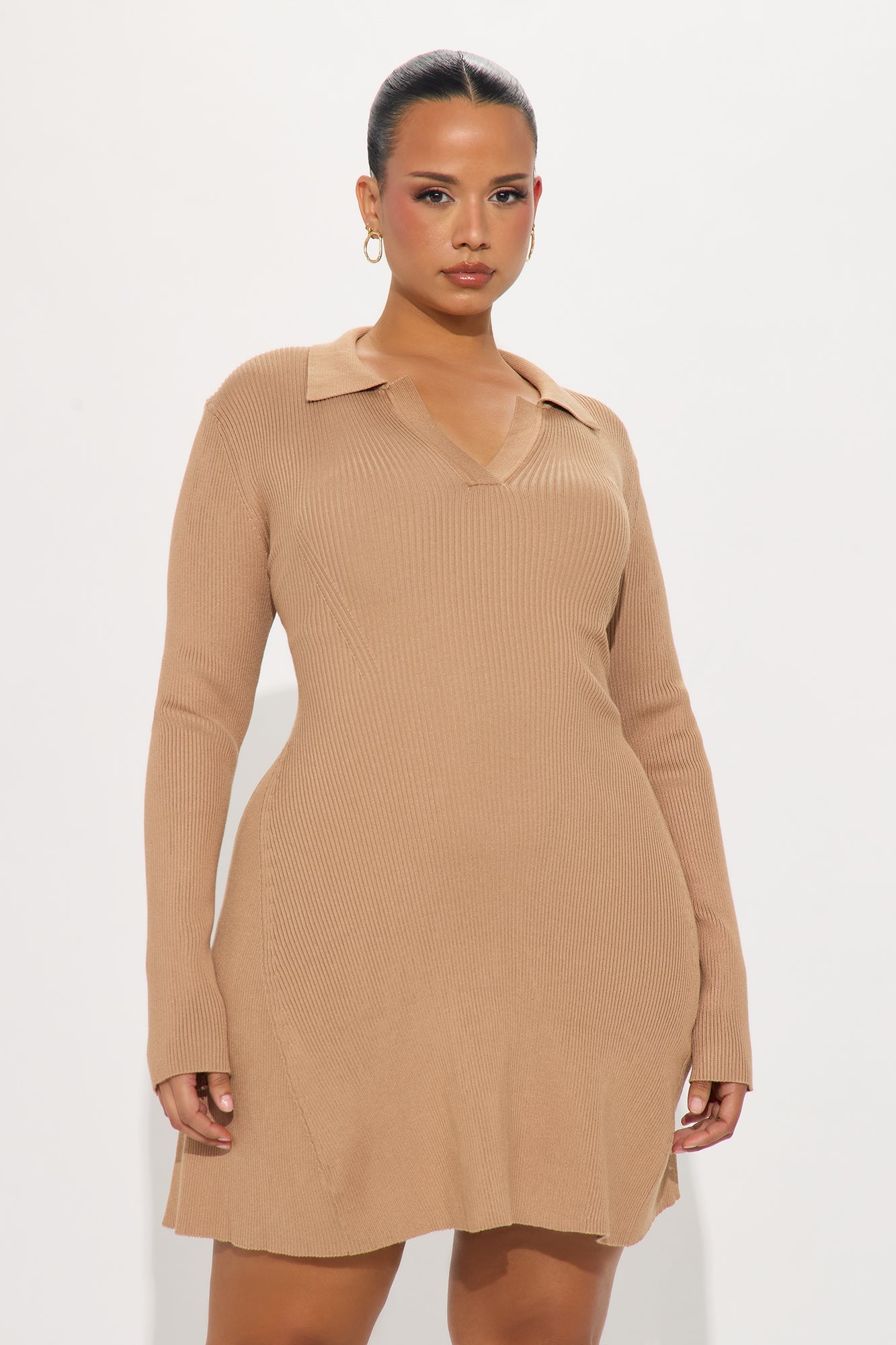 Soft Season Long Sleeve Sweater Mini Dress - Taupe