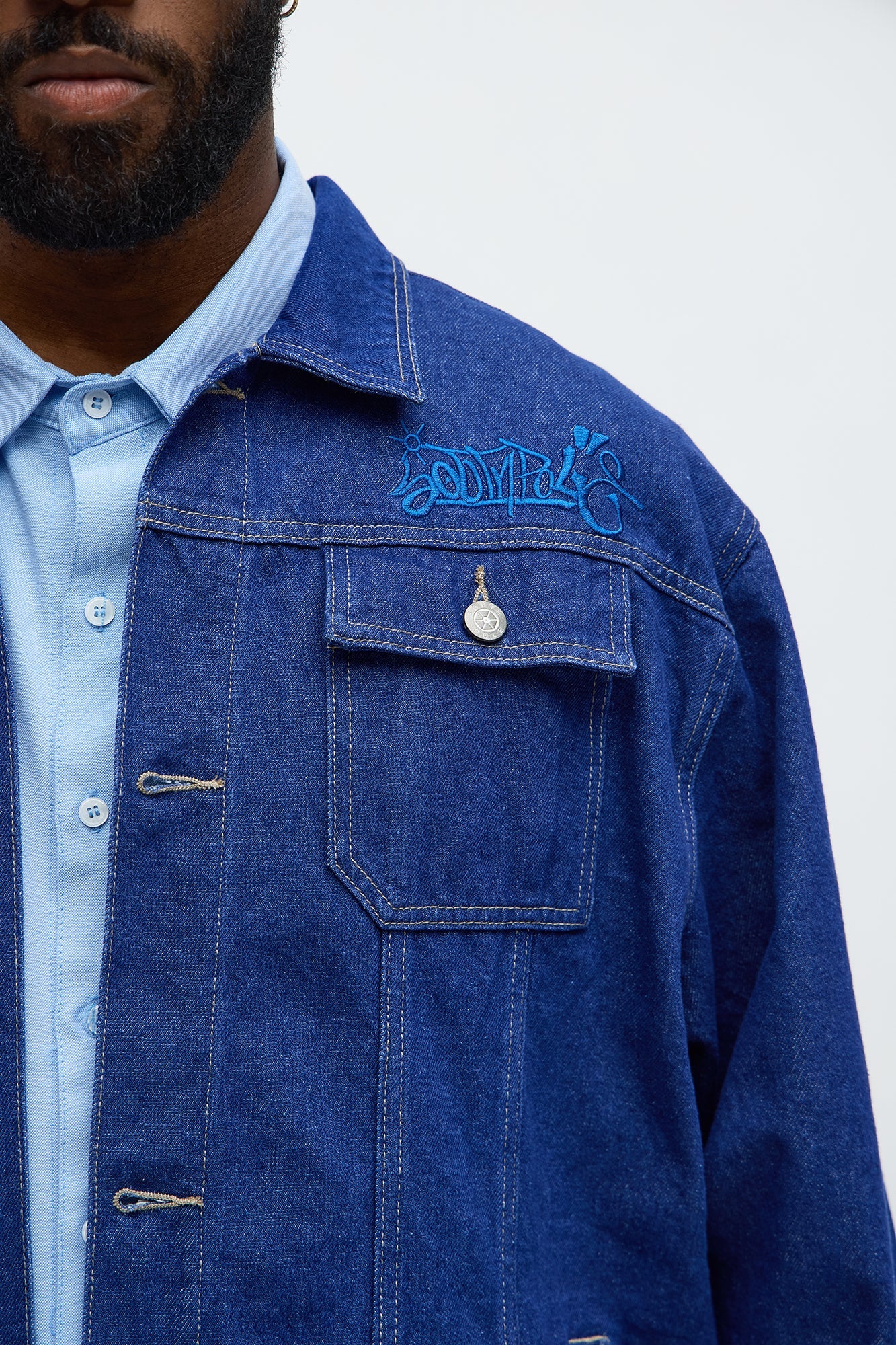 Southpole Contrast Stitch Back Hit Trucker Jacket - Blue Wash