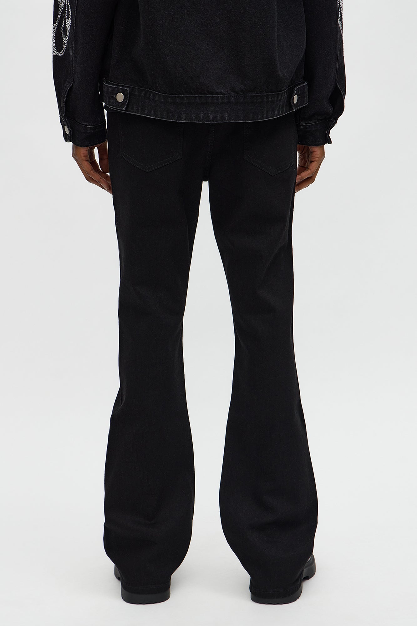 Stacked Skinny Flare Skulls Jeweled Distressed Jean - Black