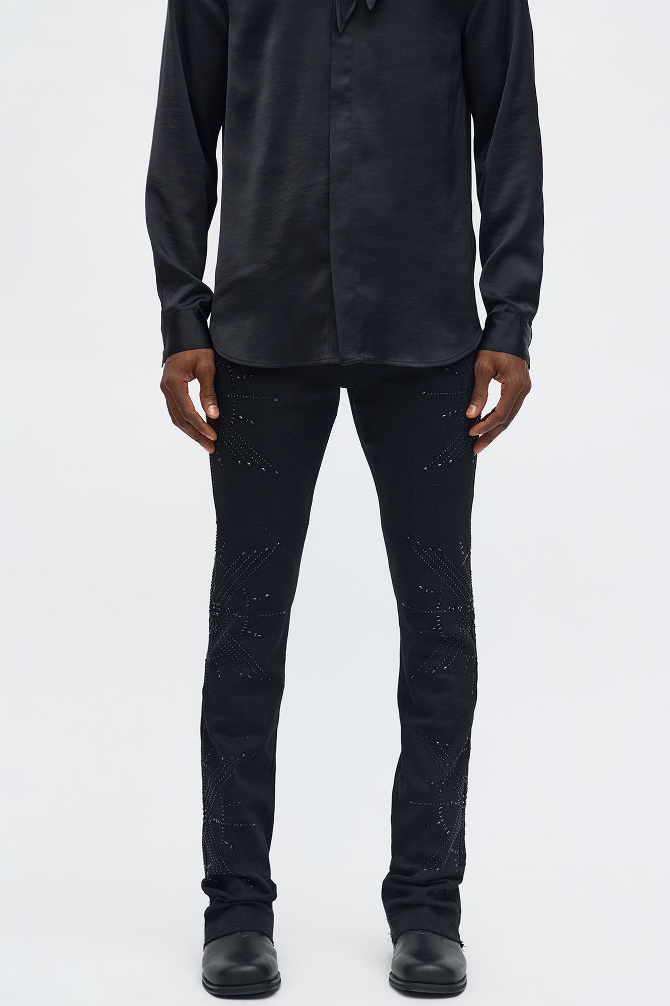 Stacked Skinny Flare Within Star Jeweled Jean - Black