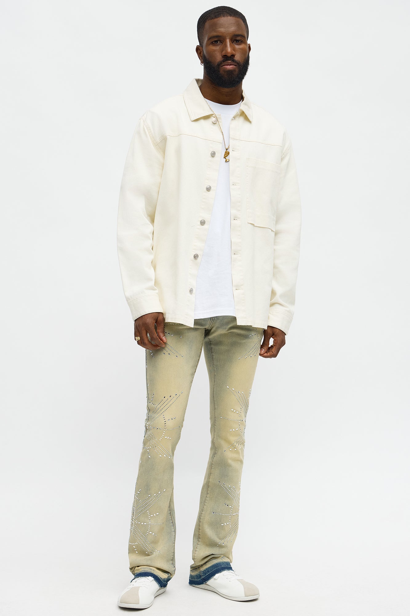 Stacked Skinny Flare Within Star Jeweled Jean - Vintage Wash