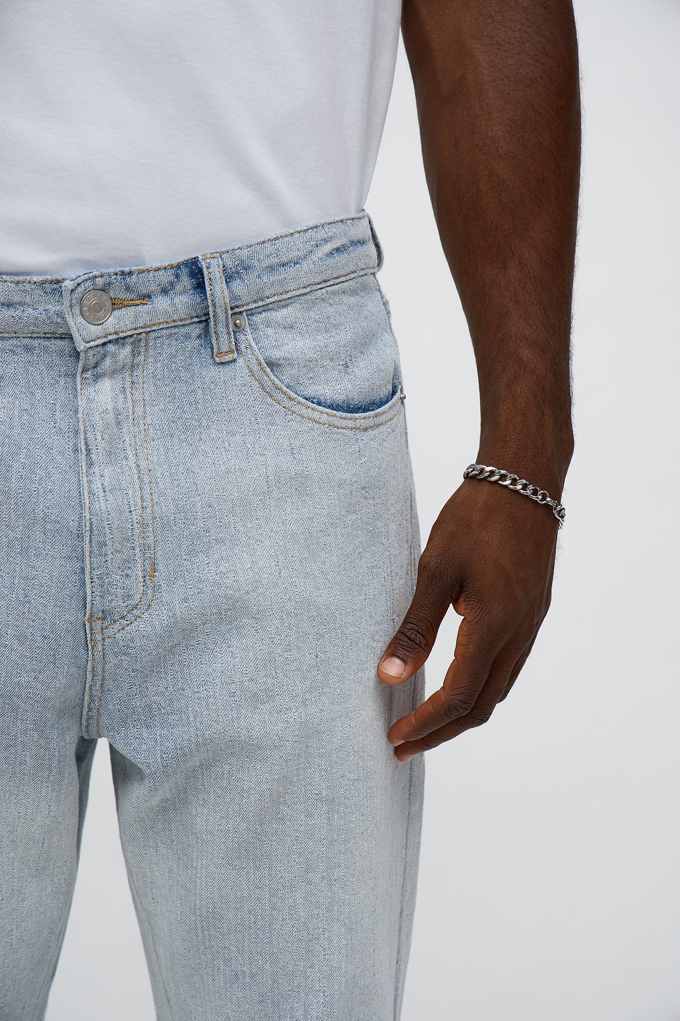 Stacked Slim Flare Slit Jacquard Jean - Light Blue Wash