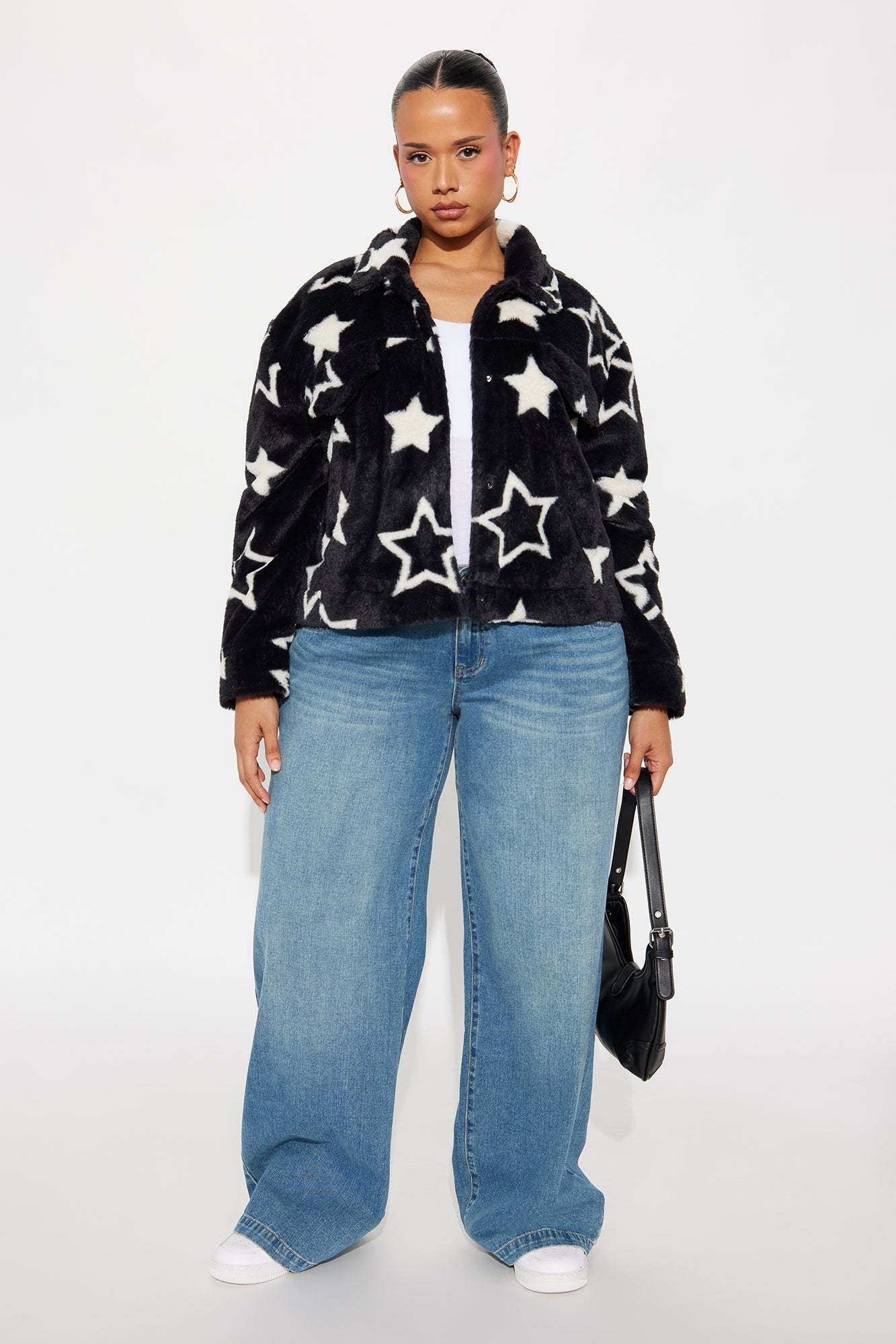 Stars Align Faux Fur Jacket - Black/combo