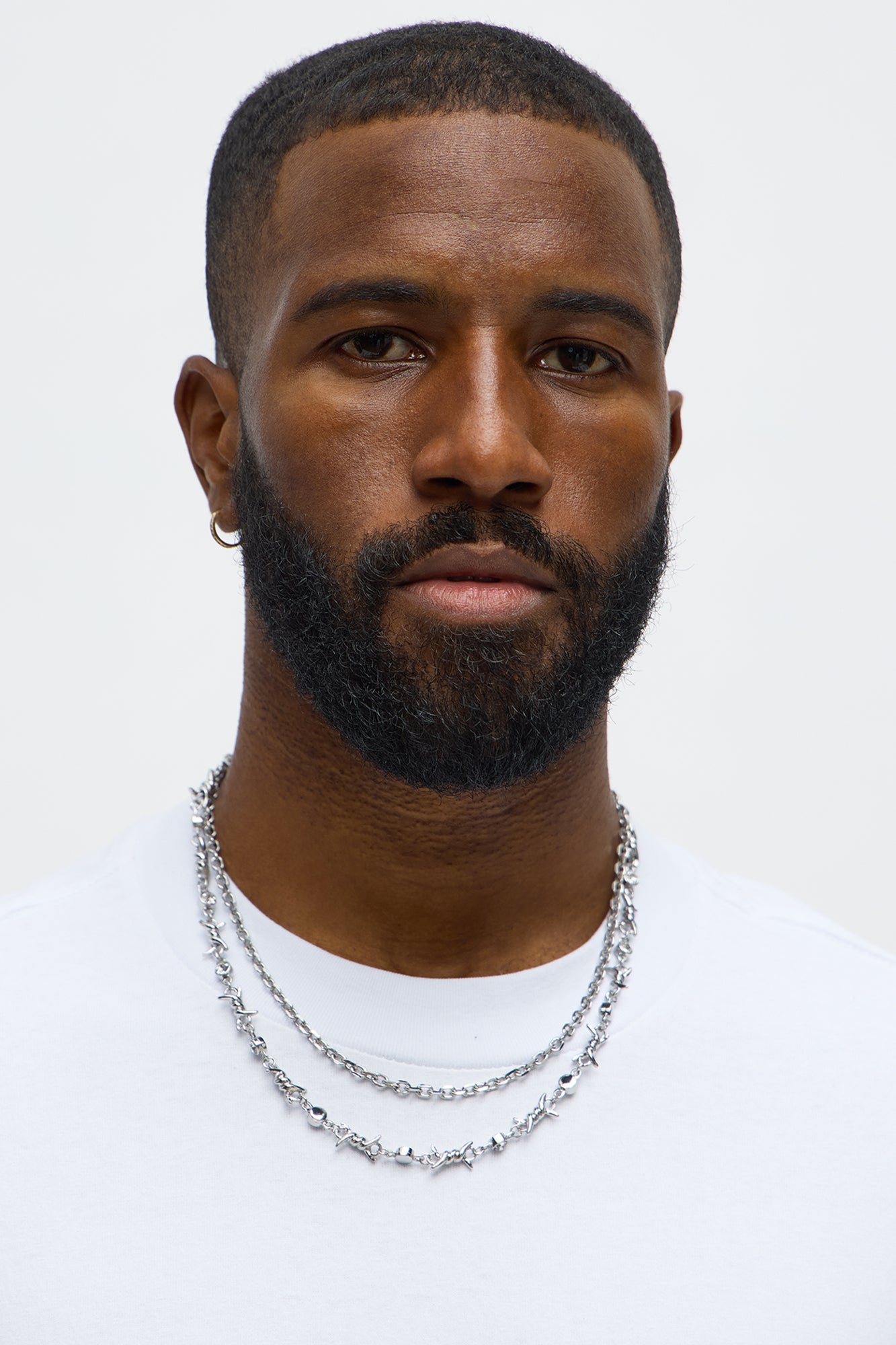Stick Together Link And Twist Chain Necklace Set - Silver