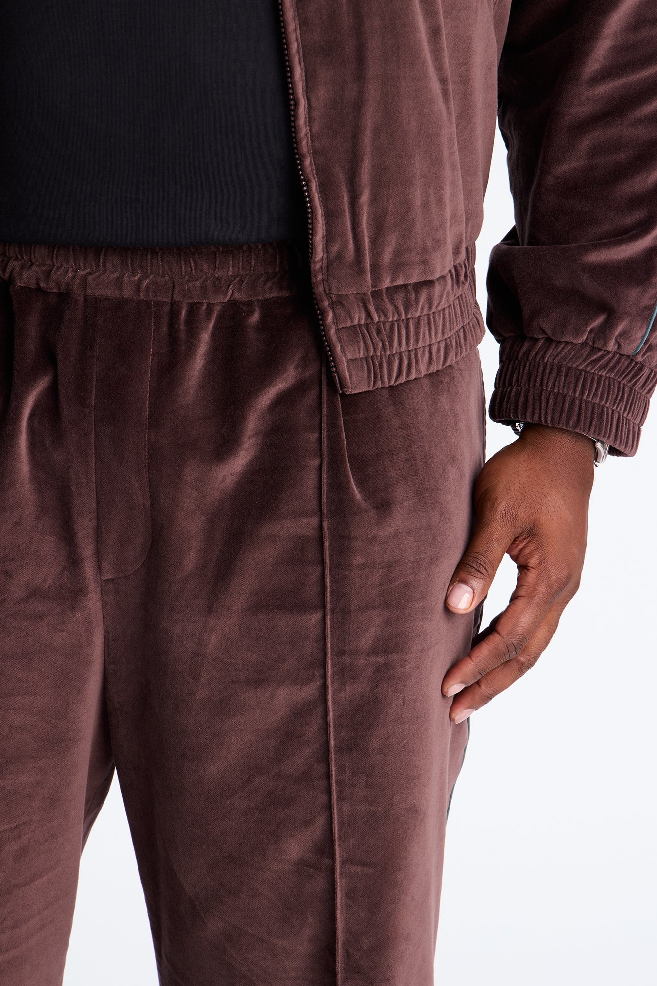 Straight Around The Track Faux Velour Piped Pant - Brown